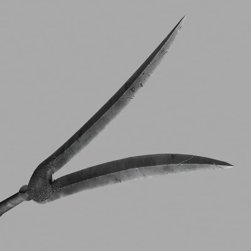 Old worn engraved polearm with steel head and wooden handle. It is a low polygon count model so it is suitable for games or real time presentations but detailed enough for rendering too. Fully UVW mapped with diffuse, specular, gloss and bump maps.