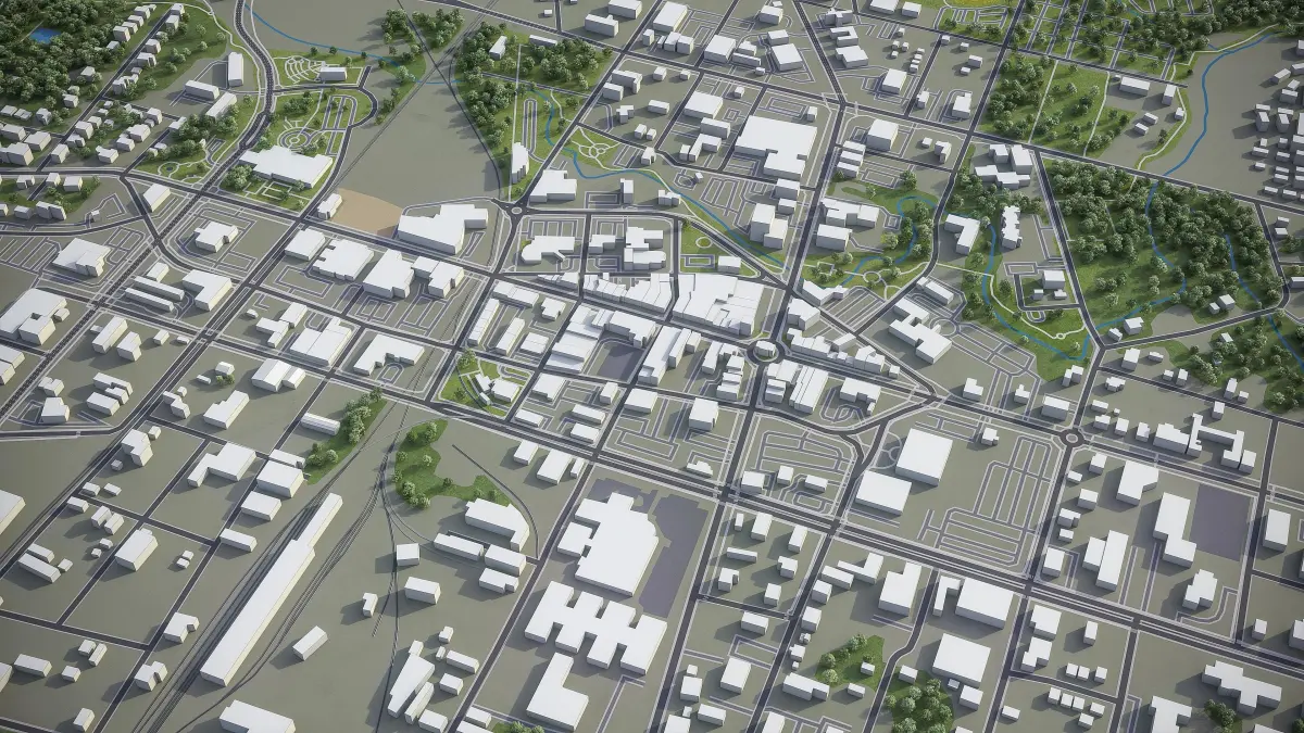 - Full city extents up to 100 x 100 km — or crop to an area of interest for better format compability and scene performance