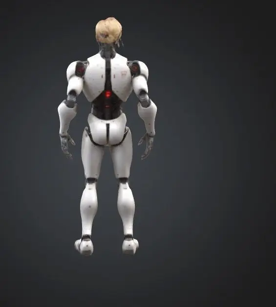 A stunning ultra-realistic humanoid robot designed as a premium game asset, featuring striking red eyes that radiate intensity and a bold, fearless demeanor. This sci-fi character boasts a muscular physique, detailed and stylish clothing, and golden blonde hair that enhances its striking appearance. Crafted with precision, the design includes fully articulated, lifelike hands and separated fingers for maximum versatility in animations. The character is captured in a T-pose, offering an ideal format for seamless integration into game development pipelines. Perfect for futuristic, sci-fi, or action-packed narratives, this asset brings a blend of power and elegance to any project.