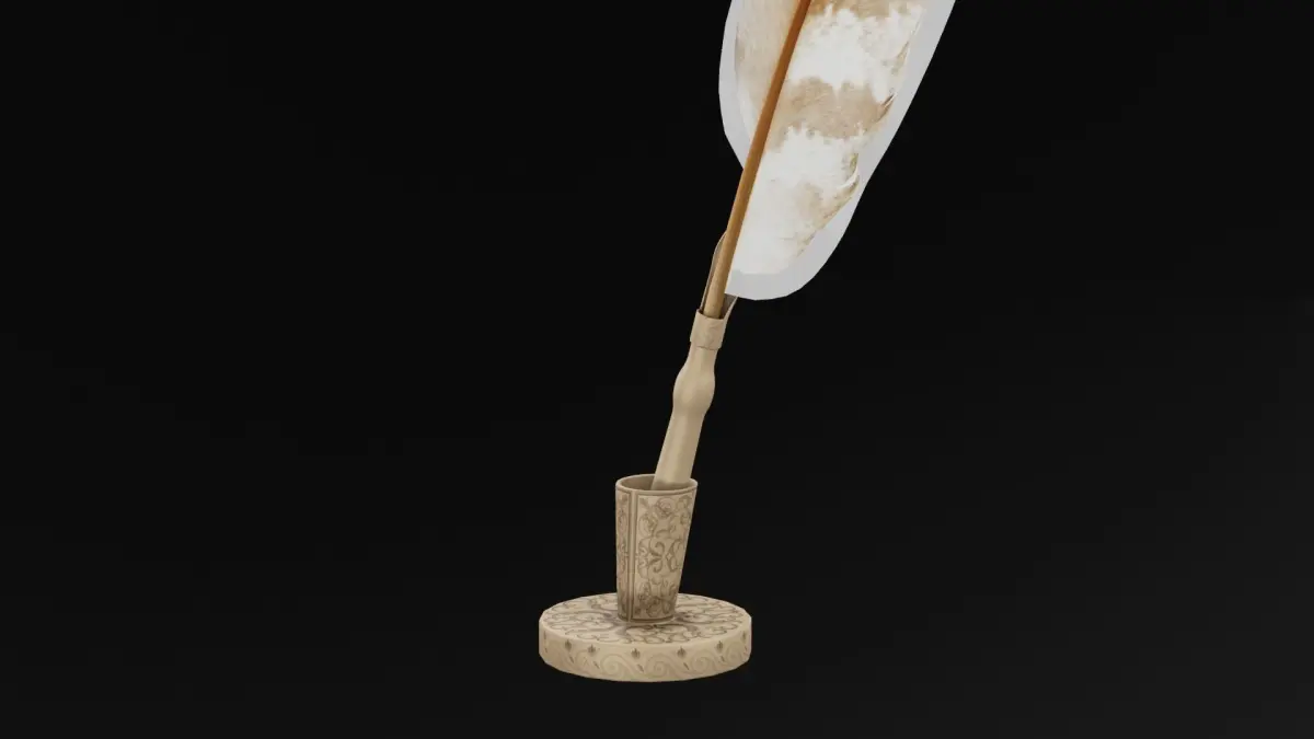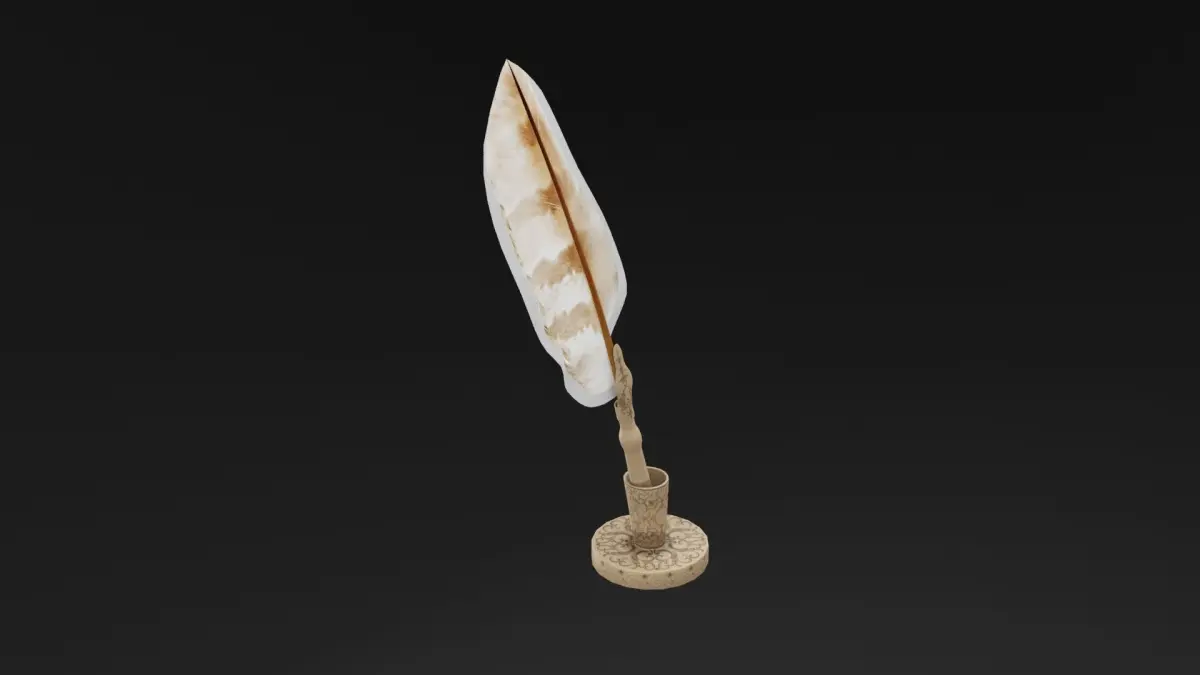 This 3D model features a Feather Ink Pen, elegantly designed with a sleek quill and a detailed feather that showcases subtle textures and soft gradients. The pen's tip is crafted with a metallic sheen, adding a touch of sophistication, while the feather displays realistic curvature and intricate details. Available in BLEND, OBJ, and DUF formats, this model is perfect for historical scenes, artistic renderings, or fantasy projects. Its photorealistic design and high-poly detailing make it a versatile addition to creative works.