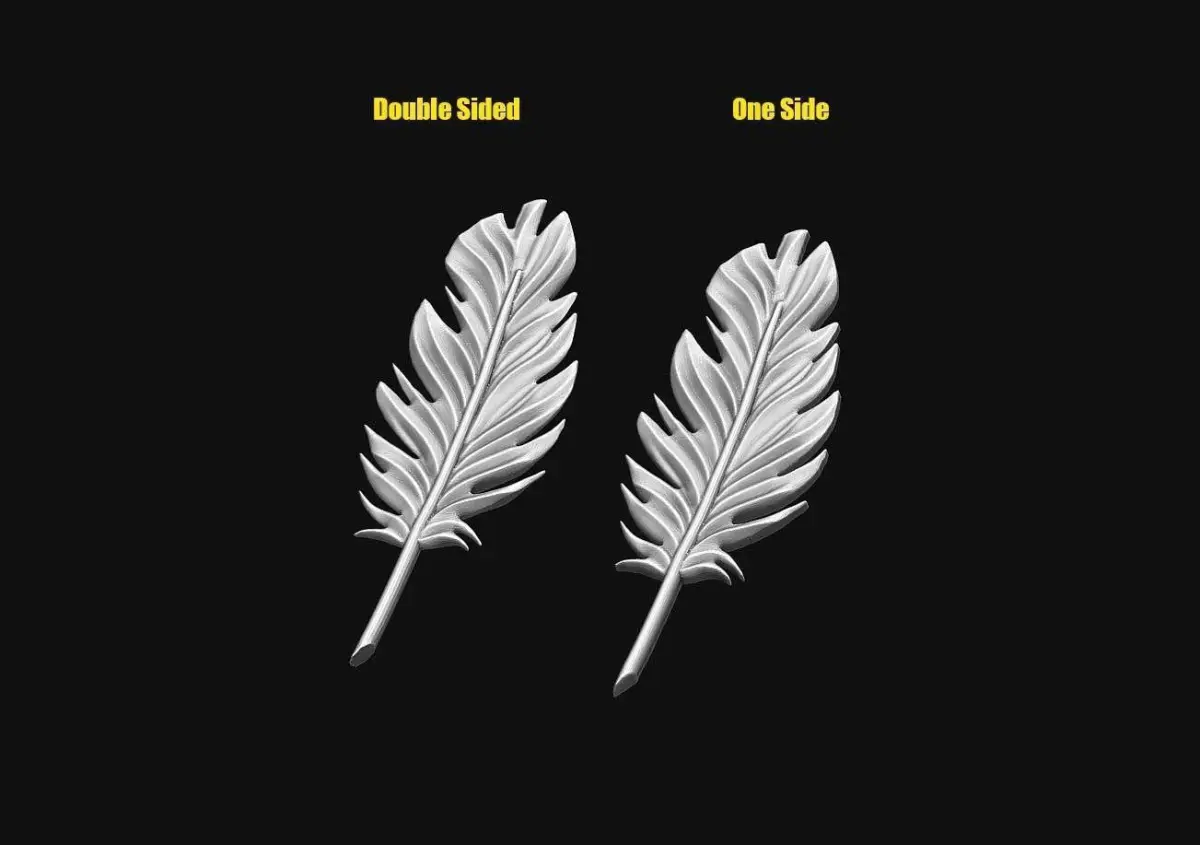 Created in zbrush. Feathers measure from 10mm to 21mm but can be staggered in printing or machining software.