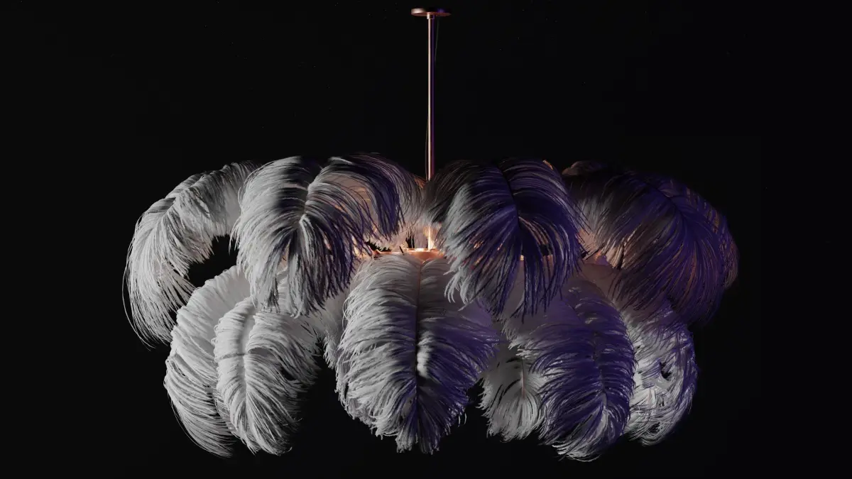 Use this Art Deco Feather Light Shade as a Hallway Pendant Light to inject charm into your home, creating the wow factor from the moment you walk through the door. The Pink Pendant Light Shade will look absolutely show-stopping in your bedroom, exuding a serenely sophisticated vibe whilst adding an element of sass and character to your existing scheme.Material: Metal bike wheel & feather chain