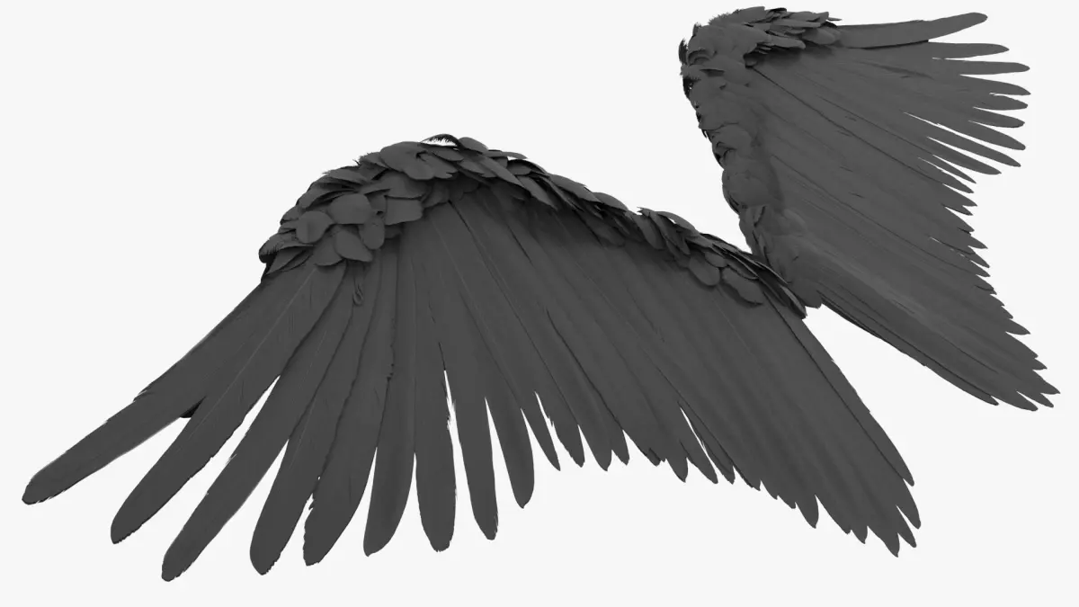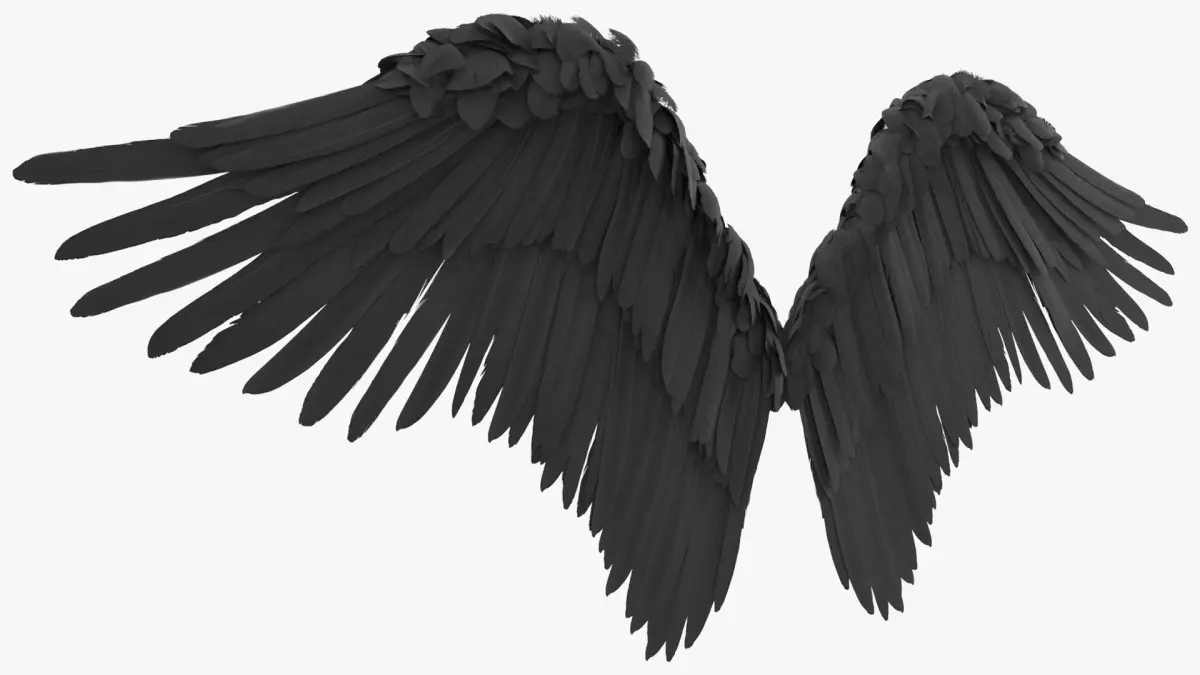 Feathered Angel Wings Black is a three-dimensional model of large, black feathered wings, often associated with angelic or fantasy characters, adding an ethereal and dramatic element to any scene.