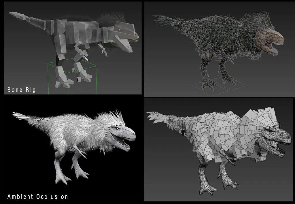 2048x2048 textures :-feathered body diffuse (red & black)-feather diffuse texture (red, black & mixed black-white)-feather alpha-feather depth-naked body diffuse (lizard T-rex skin)-body normal-body specular -body ambient occlusion