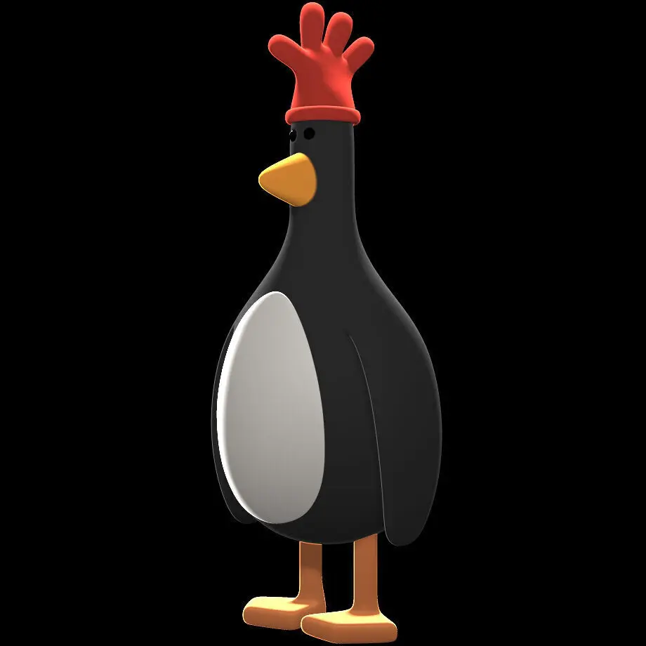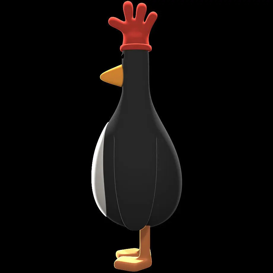 3D-printable model of Feathers McGraw. The rubber glove is a separate piece and can be attached or removed as you like.