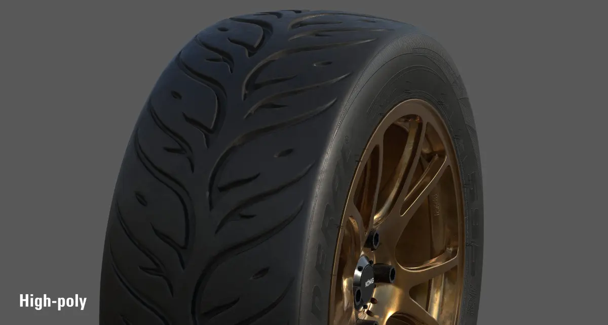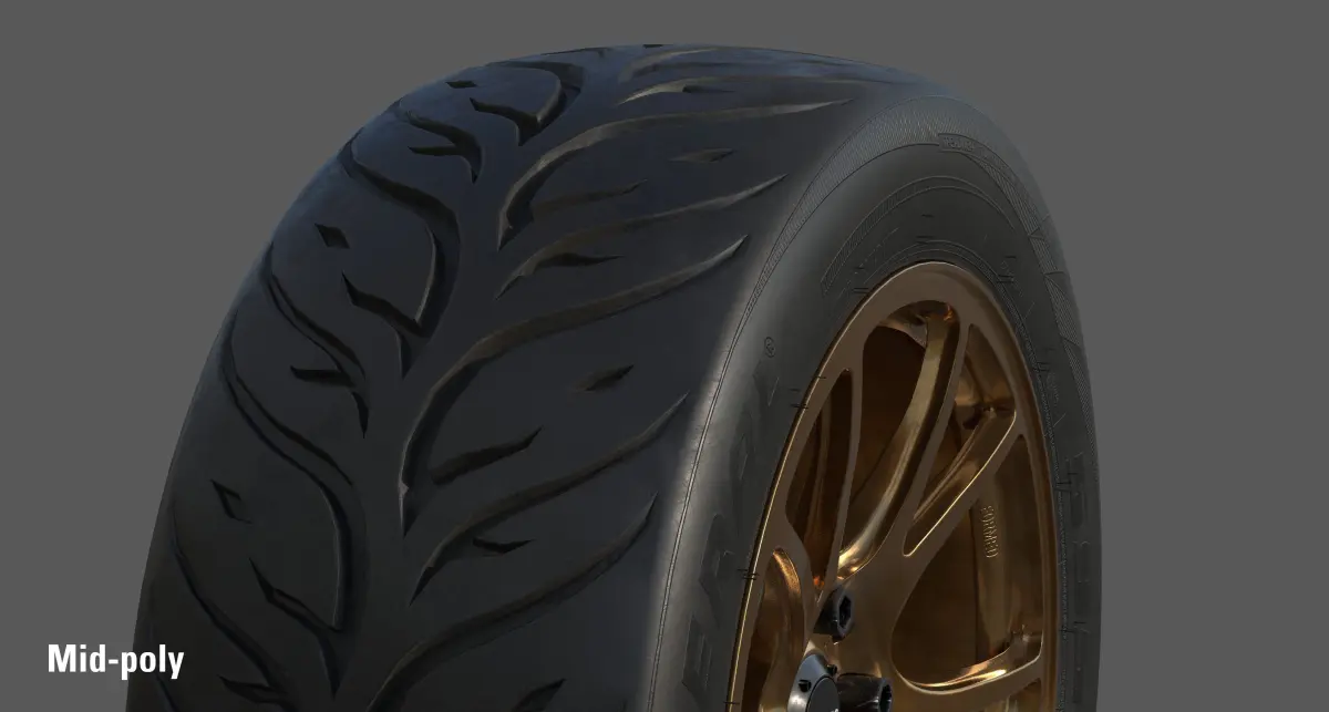 This Model includes the Federal 595 RS-RR 205/50 for a 15x8 rim. The Tire comes in low poly (flat tire profile), mid poly and high poly.
