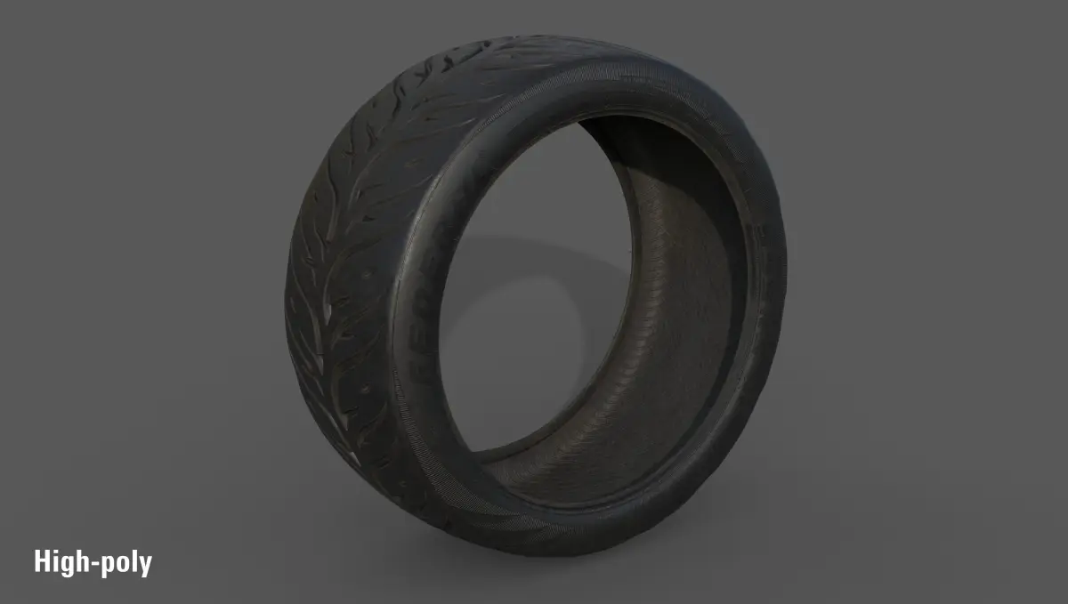 This Model includes the Federal 595 RS-RR 265/35 for a 18x9.5 rim. The Tire comes in low poly (flat tire profile), mid poly and high poly.