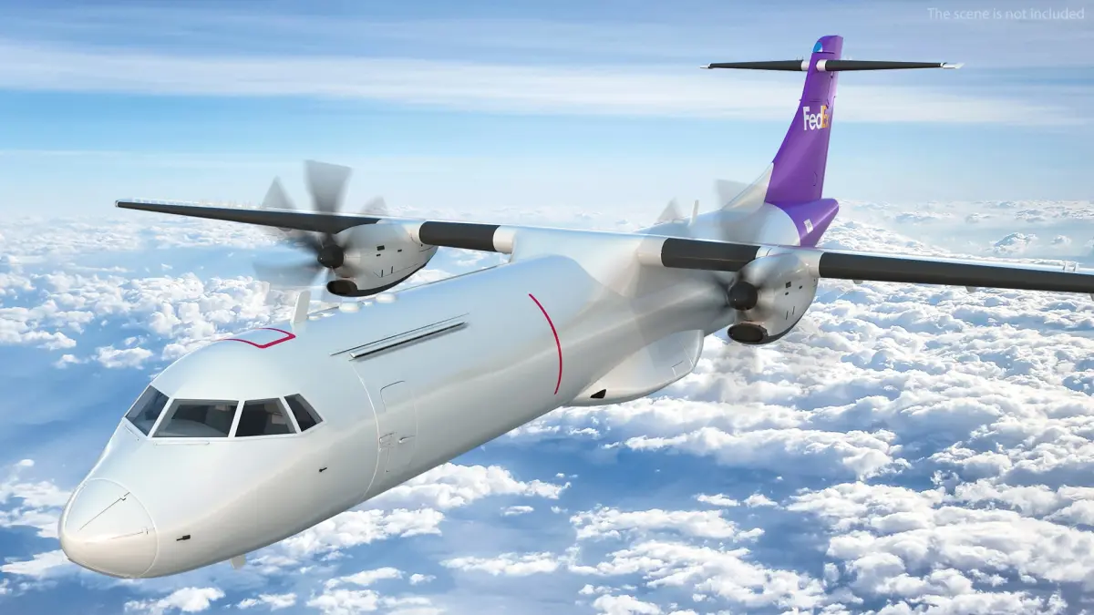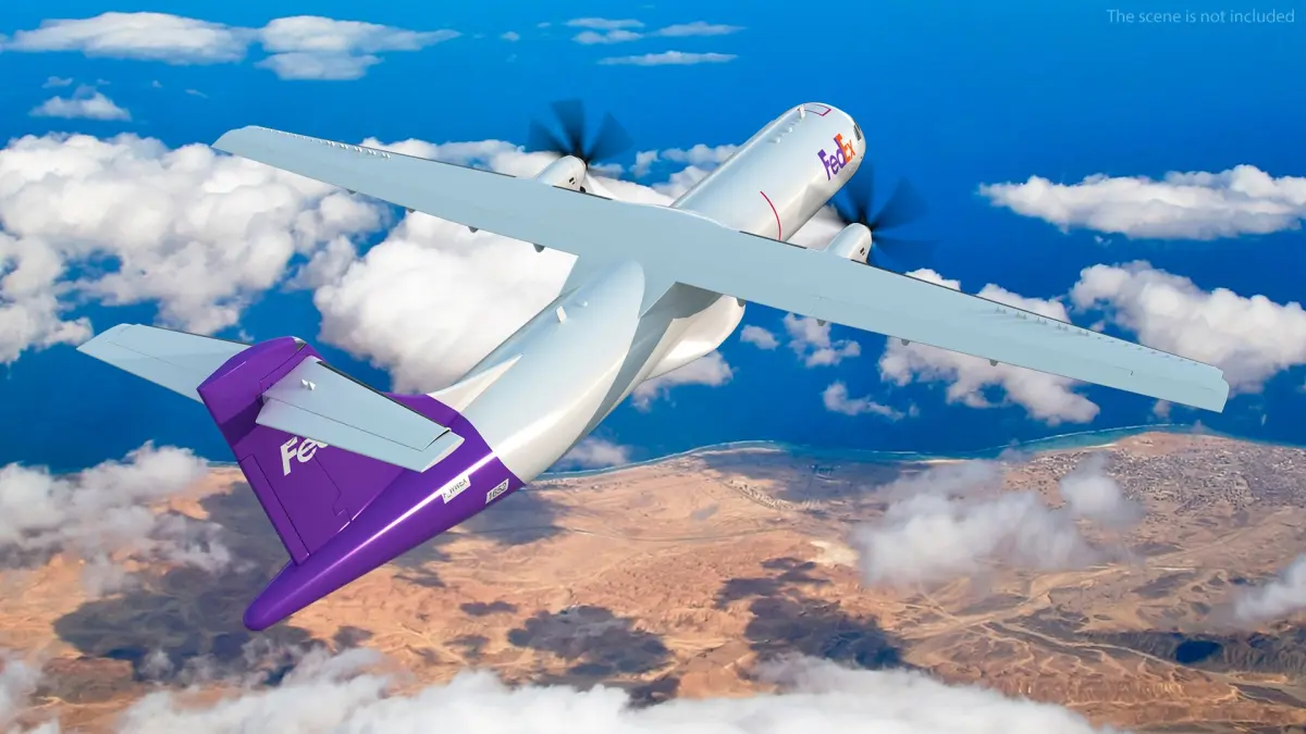 FedEx Air Logistics Aircraft ATR 72 Flying is a 3d model of a cargo aircraft, specifically designed for transporting goods and packages.