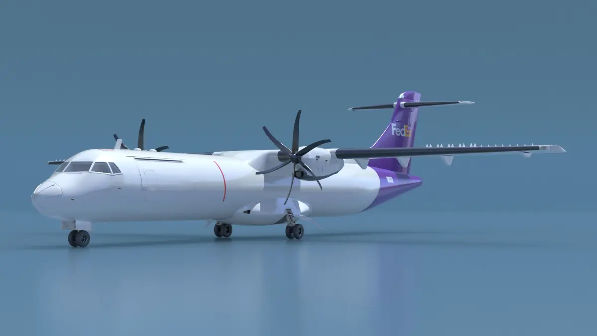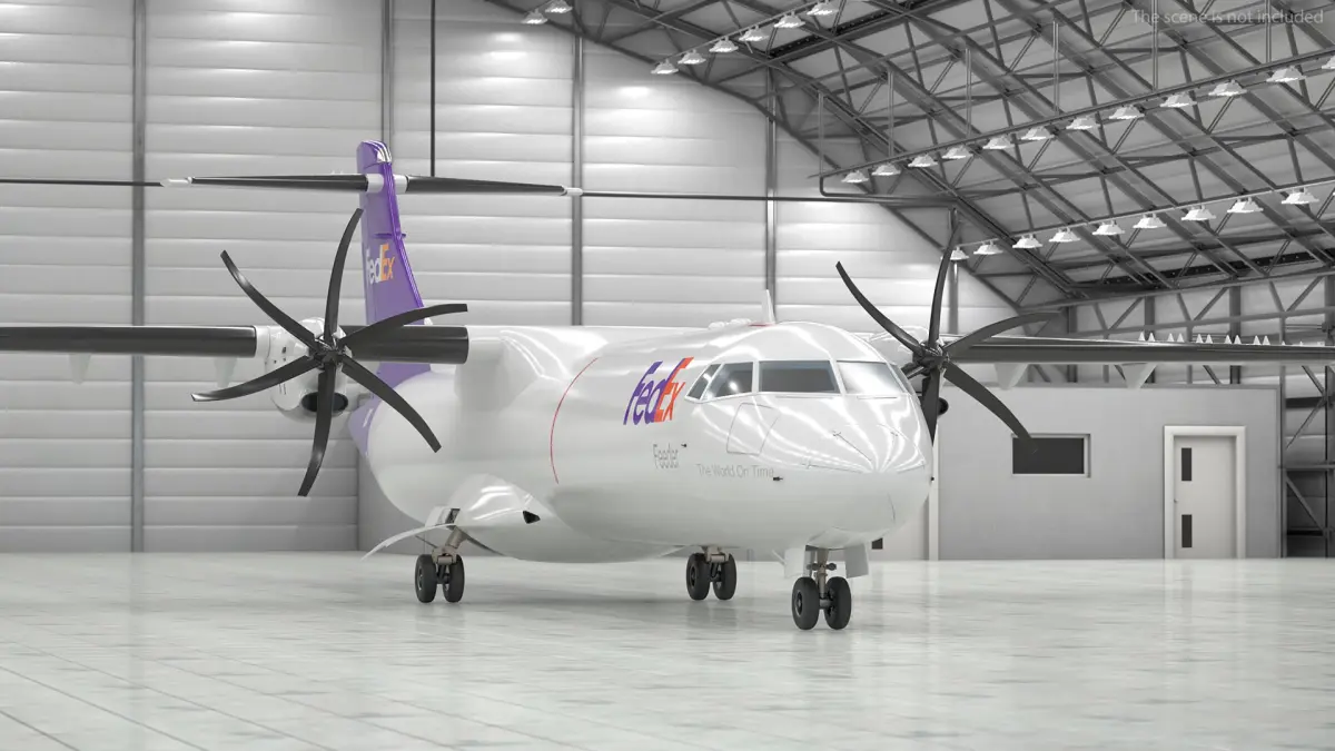 FedEx ATR 72-600 Cargo Aircraft is a 3d model of a regional twin-turboprop short-haul airliner, known for its efficiency and reliability in connecting smaller airports.