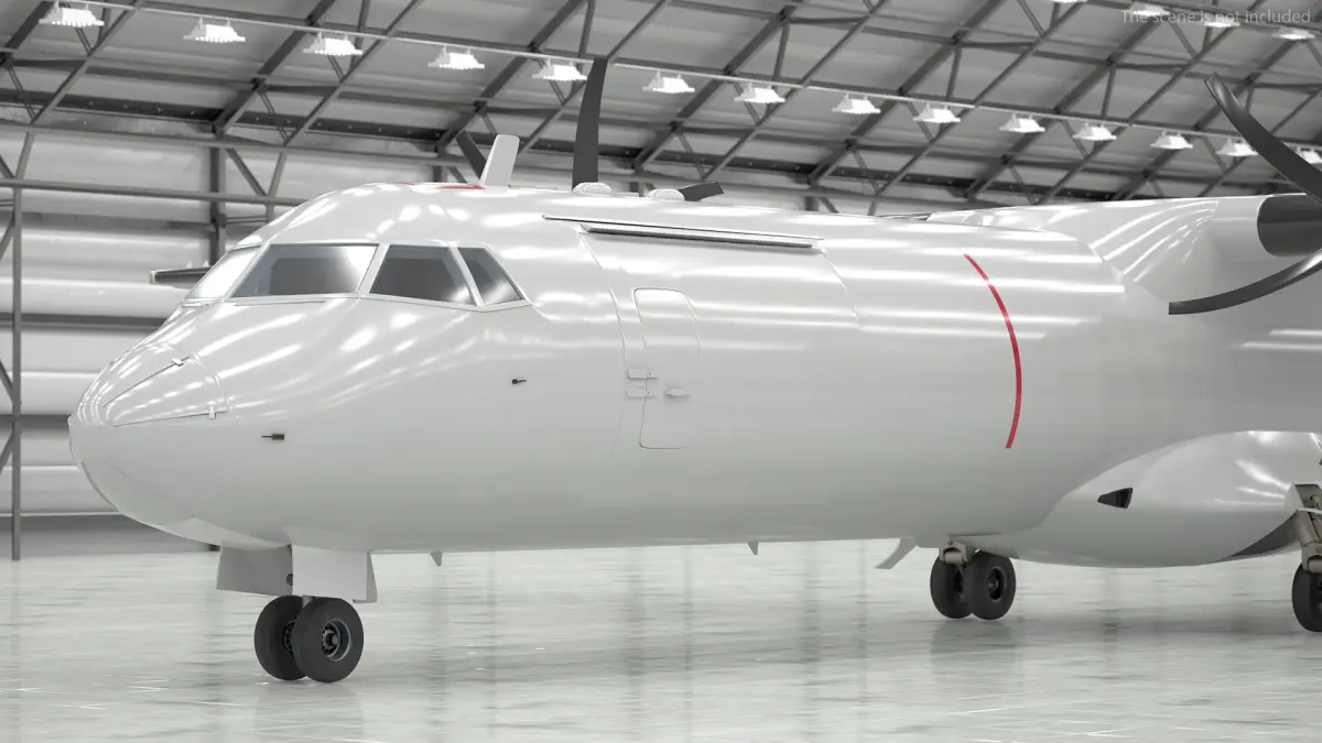 Designed with a sleek, aerodynamic structure, this aircraft features large twin propellers and a robust landing gear, making it ideal for short to medium-haul routes. The spacious cabin can comfortably accommodate passengers while optimizing fuel efficiency, ensuring economical operation and reduced environmental impact.