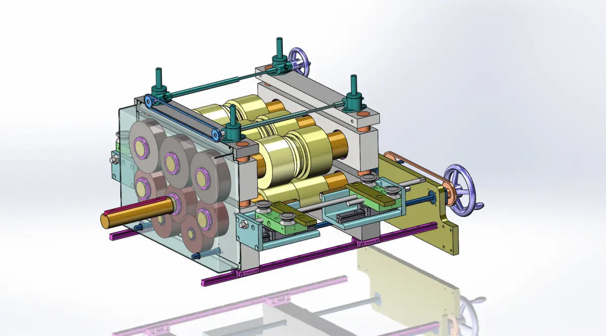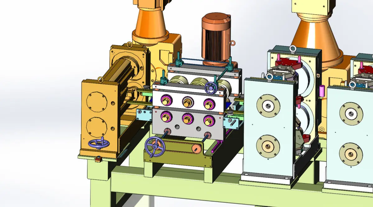 Feed & Form Unit is a sub-assembly of roll-forming line. Used to push flattened coil through.