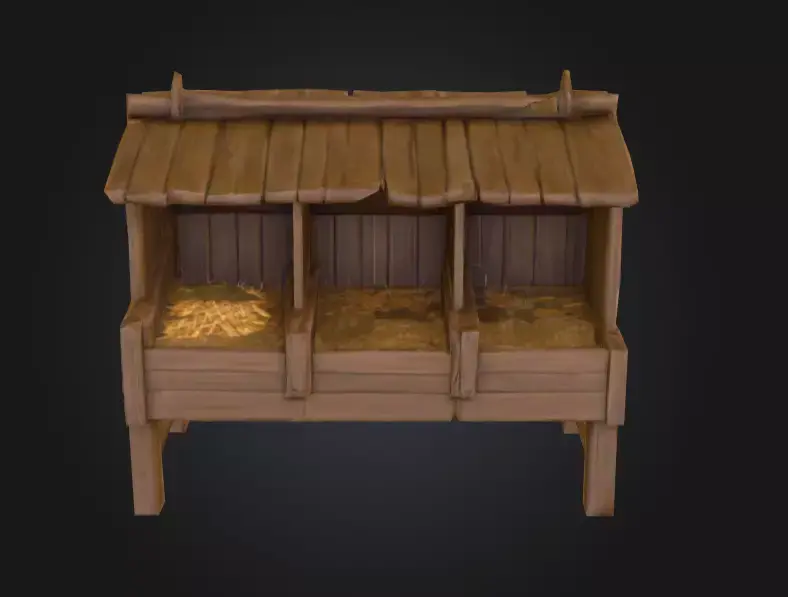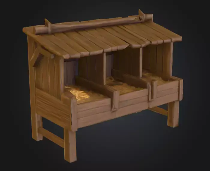 The Feeder Station is not just a background prop—it plays an essential narrative role in world-building. In a medieval village, it could sit outside a stable or castle yard, filled with hay or grain for horses and livestock. In a survival game, it could function as an interactive mechanic for feeding tamed animals. In fantasy settings, it might even be adapted into something more magical—perhaps glowing runes carved into the wood to sustain mythical beasts. This versatility makes it valuable across genres ranging from stylized farming simulators to dark, atmospheric RPGs.