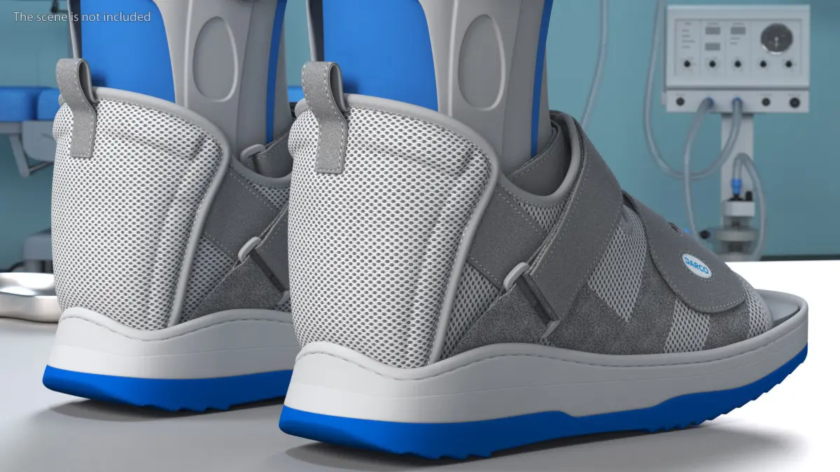 Feet Orthotics Darco with Off-Loading Shoes for 3D Print is a high-quality 3D model, ready to be used for 3D printing projects. The model's geometry is solid, allowing the forms and details to be replicated excellently in a 3D print. The product renders were created in 3Ds Max with V-Ray to demonstrate how the model may look with materials applied. The renders have no post-processing!