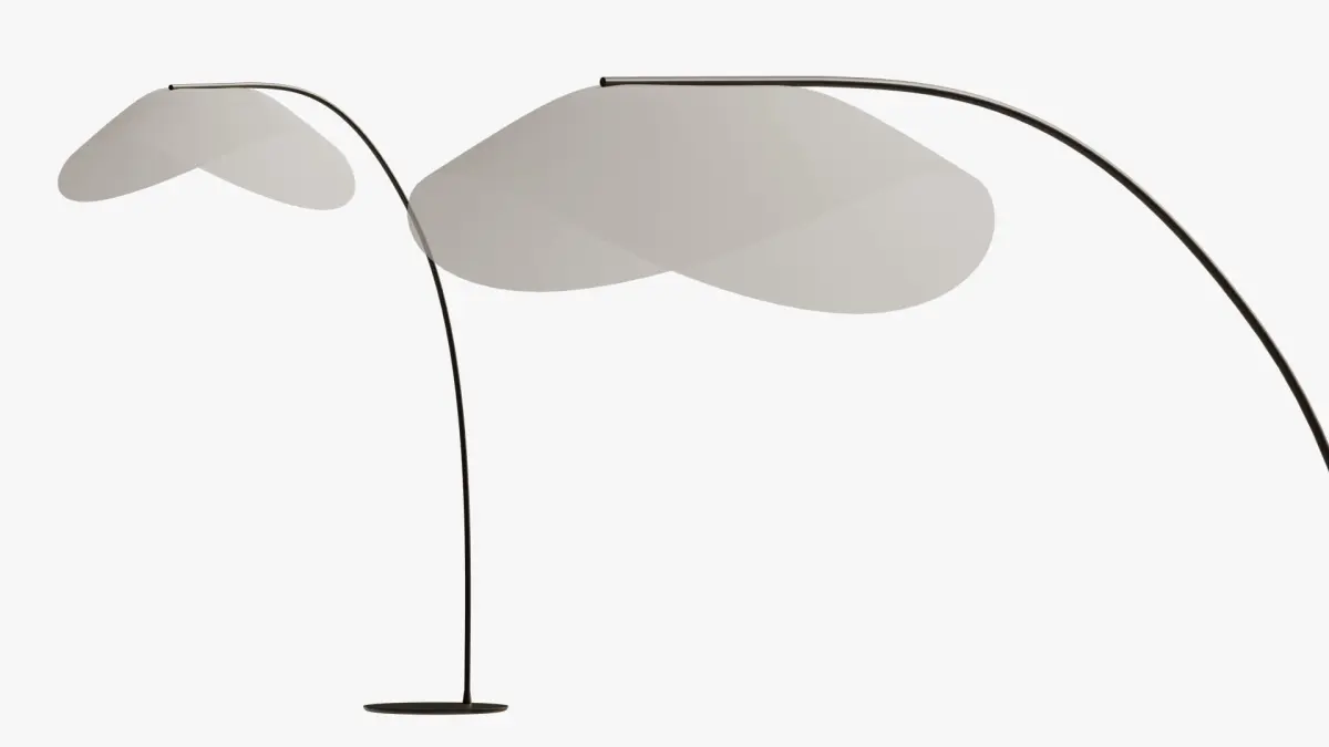 Design sometimes has a restorative power and this floor lamp, like a bamboo cane bowing beneath the weight of snow, radiates serenity. The soft angle of the metal tube is echoed in the shade, which diffuses soothing LED light.