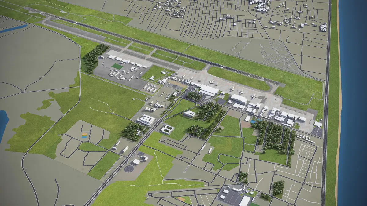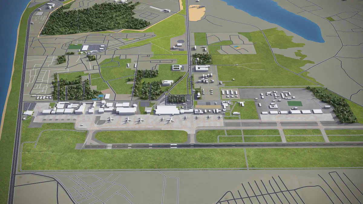 This is exact and accurate to-scale 3D model of Felix Houphouet Boigny International Airport - ABJ and its surrounding area based on GIS data (May 2020)