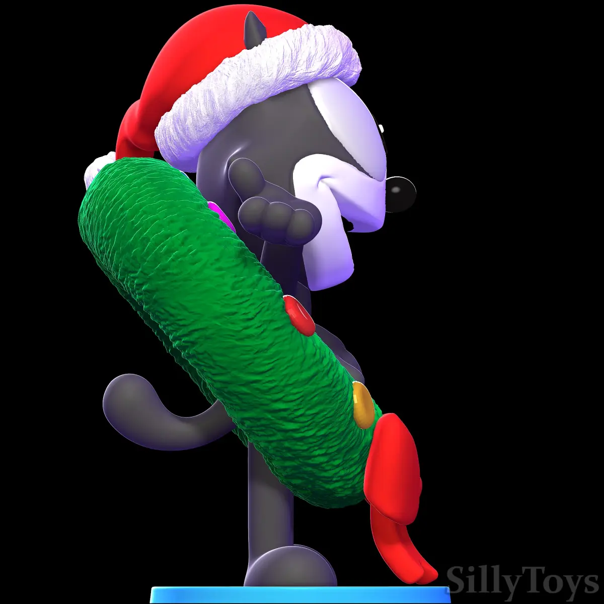 Felix the Cat adds fun and cheer to the holiday season with his classic charm and playful smile. This version of Felix is perfect for bringing some holiday spirit and a bit of nostalgia to Christmas decorations and celebrations.