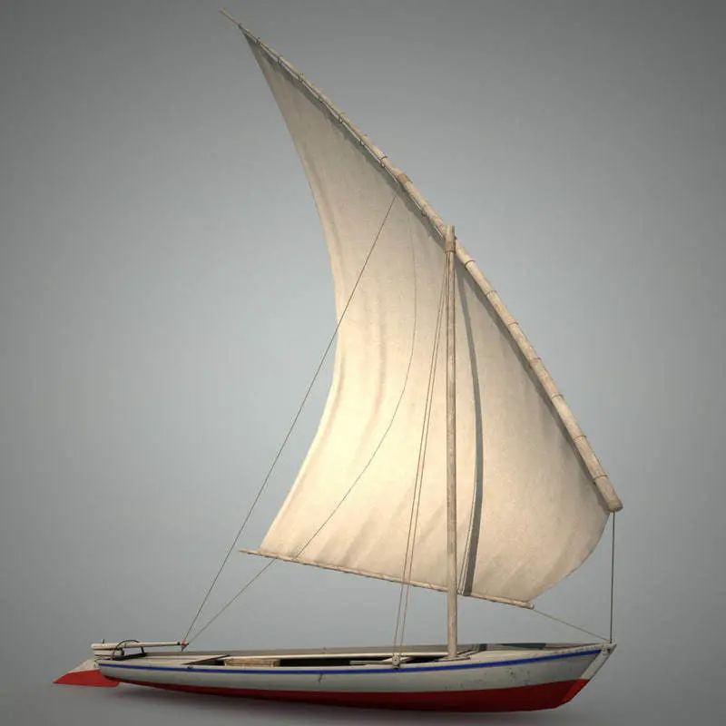 High quality 3d model of a Felucca: a traditional wooden sailing boat used in the Red Sea and eastern Mediterranean, Malta, and particularly along the Nile in Egypt, Sudan, also in Iraq.