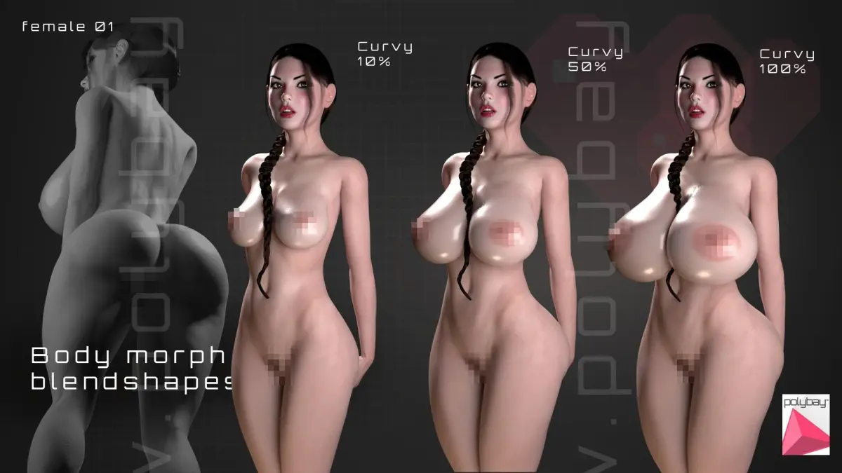 1.2 Update includes curvy body morph (see image), improved Unity support, Blender project, control rig + much more.