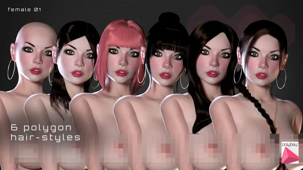 - 6 unique and light-weight polygon hair styles
