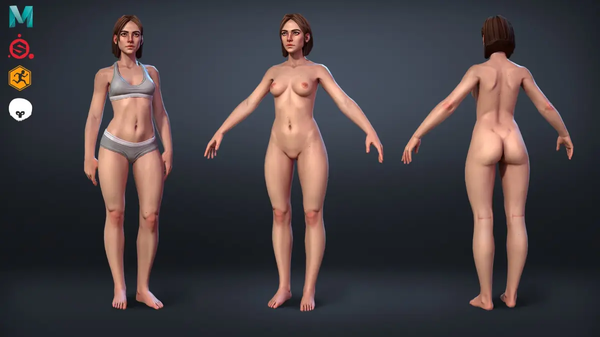 - 4 texture Sets : Head, Body. Hair, Underwear