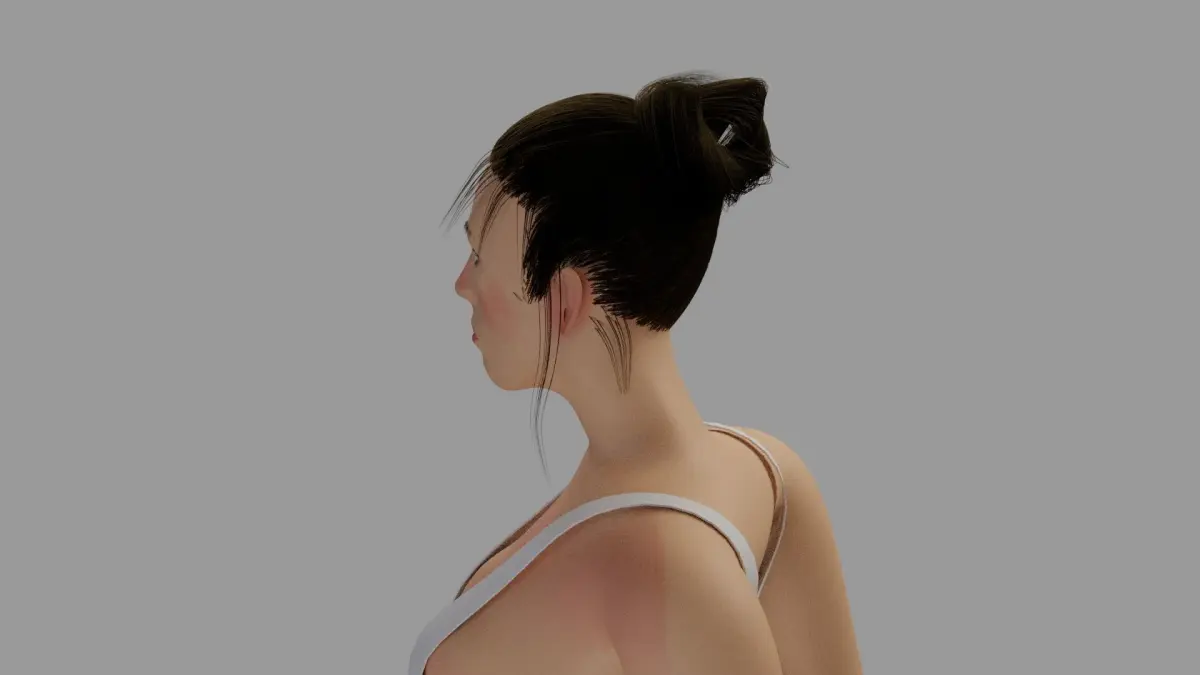 A female character model wearing shorts and a top with a simple walking animation. Rigged with bone constraints(In blender file only) and textured materials.The 3d files contain 8 mesh objects, 5 hair particle systems, 7 materials(with 4 image texture), an armature, a curve, 3 light sources, and 3 empty objects(used as custom shapes for the armature).The mesh objects are named as follows:-Body-Eye.l-Eye.r-Hair-Lower_Teeth-Upper_Teeth-Pants-TopThe body mesh object has 2 hair particle systems namely:-Eye_Brows-Eye_LashesThe hair mesh objects has 3 hair particle systems namely:-Hair-Hair_Back-Hair_Bangs_And_Loose_StrandsThe Materials are named as follows:-Body_Mat-Eye_Inner-Eye_Outer-Hair_Mat-Pants_Mat-Teeth_Mat-Top_MatThe texture images are all PNGs with resolution ranging from 620p to 4K. They are as follows:-Body_Base_Color-Body_Normal-Body_Roughness-Eye