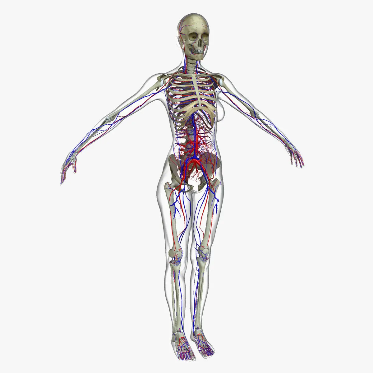 ==FEATURES==-Very detailed circulatory system including veins, arteries and heart.-X-Ray Shader for the Skin (Ready to render exactly as shown)-Each bone is select-able and named / grouped properly for easy organization-Real World Scale (6 feet 2 inches, 1.89 meters, 74.6 inches)-Displacement map for extreme detail-Clean edge-loop based topology-Light set up ready to Render-Maya 2015+ compatible
