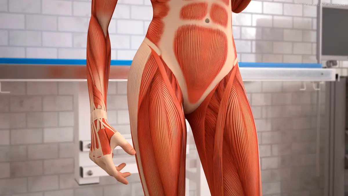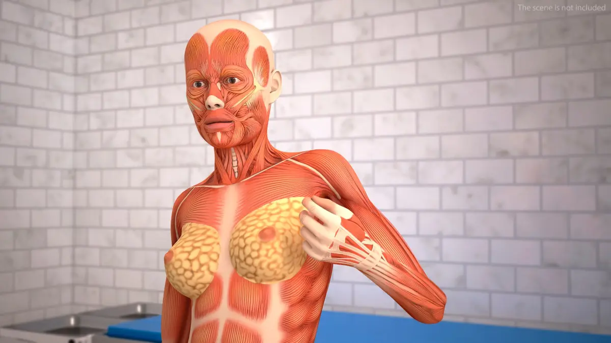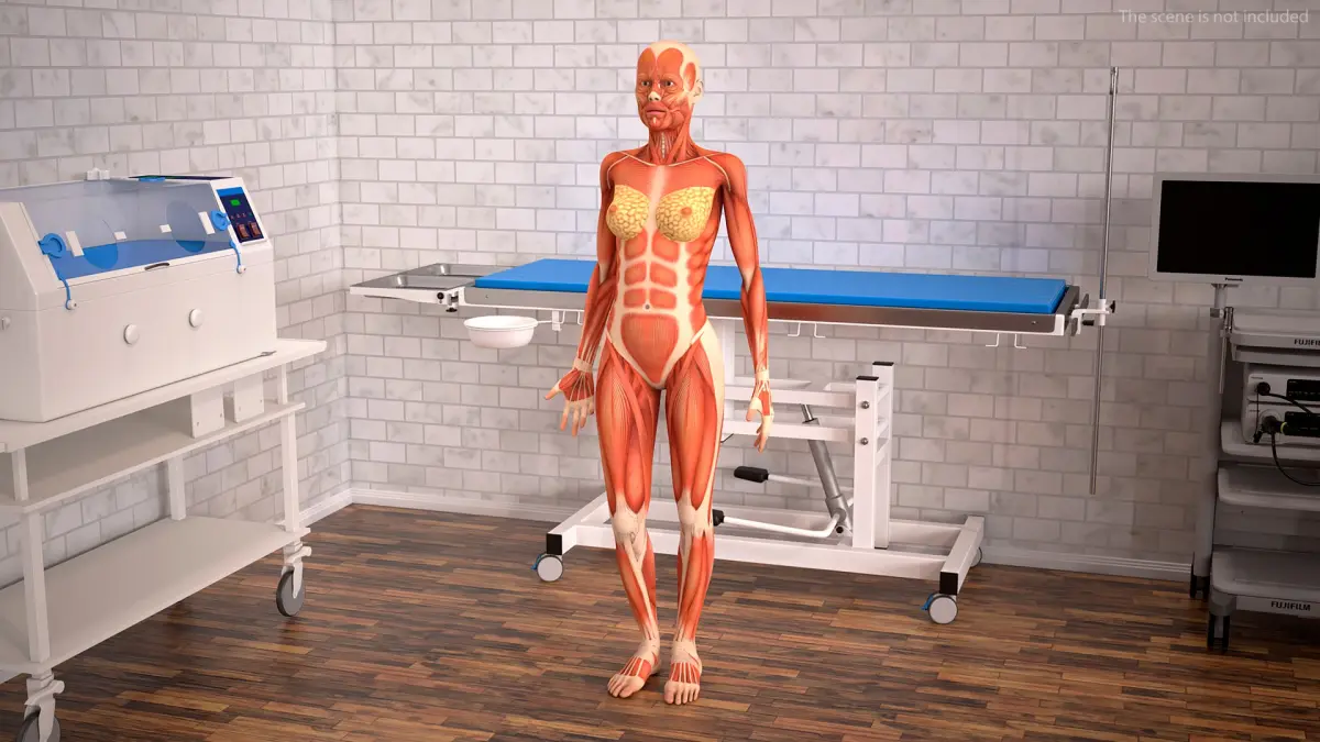 Female Full Body Anatomy Muscles Rigged is a three-dimensional model of human female anatomy structure, that focusing on the detailed depiction of muscles and their interactions within the muscular system.