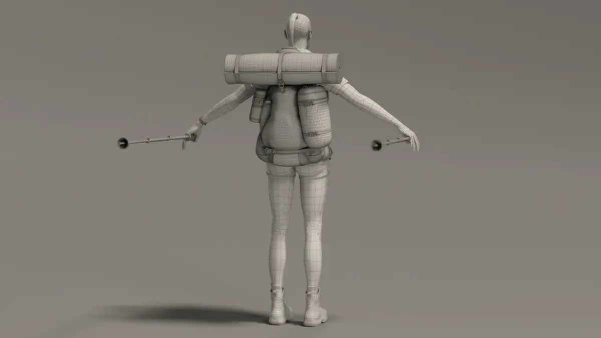 - Takes Poles from Backpack