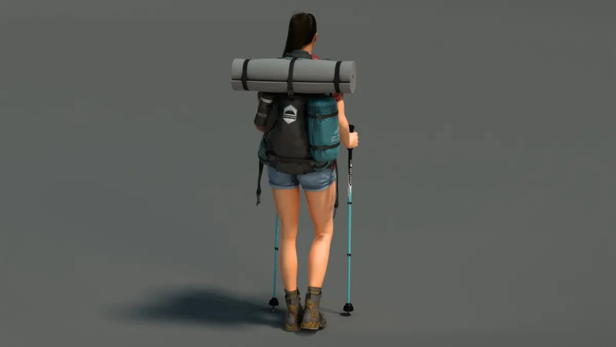 - Takes Poles from Backpack