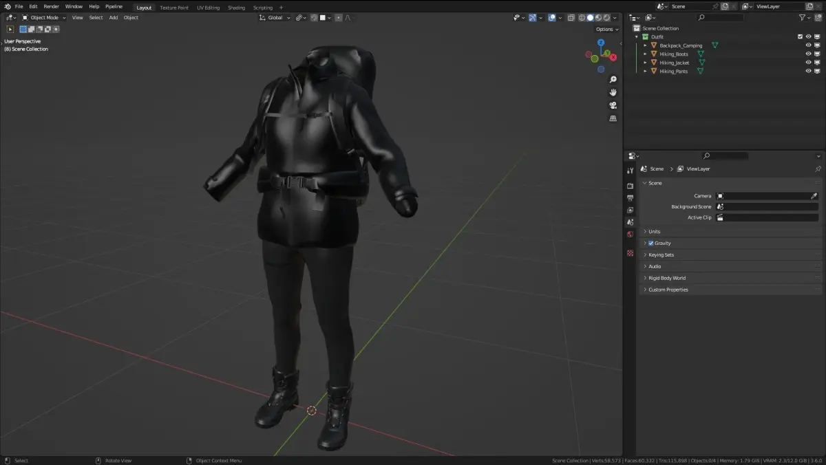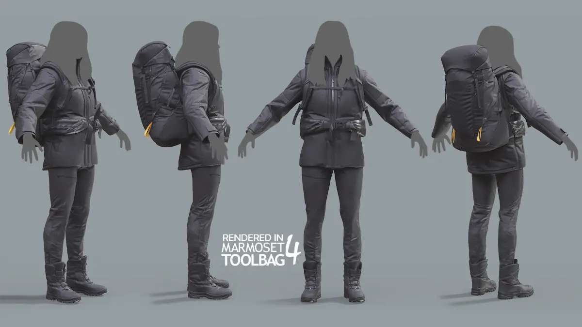 Unreal Engine and Blender version with a body (Rigged) - https://www.cgtrader.com/3d-models/character/clothing/woman-backpacker-modular-rigged