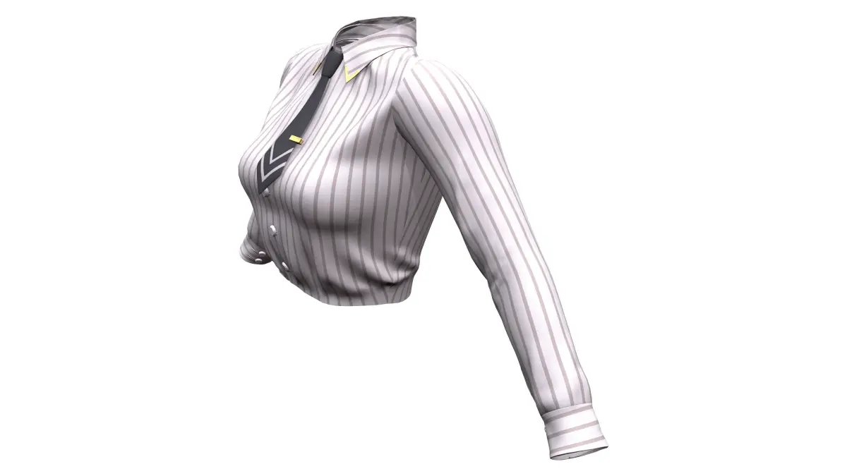 Female Long Sleeves Striped Tucked In Office Shirt With Tie