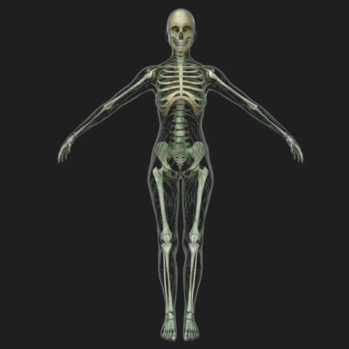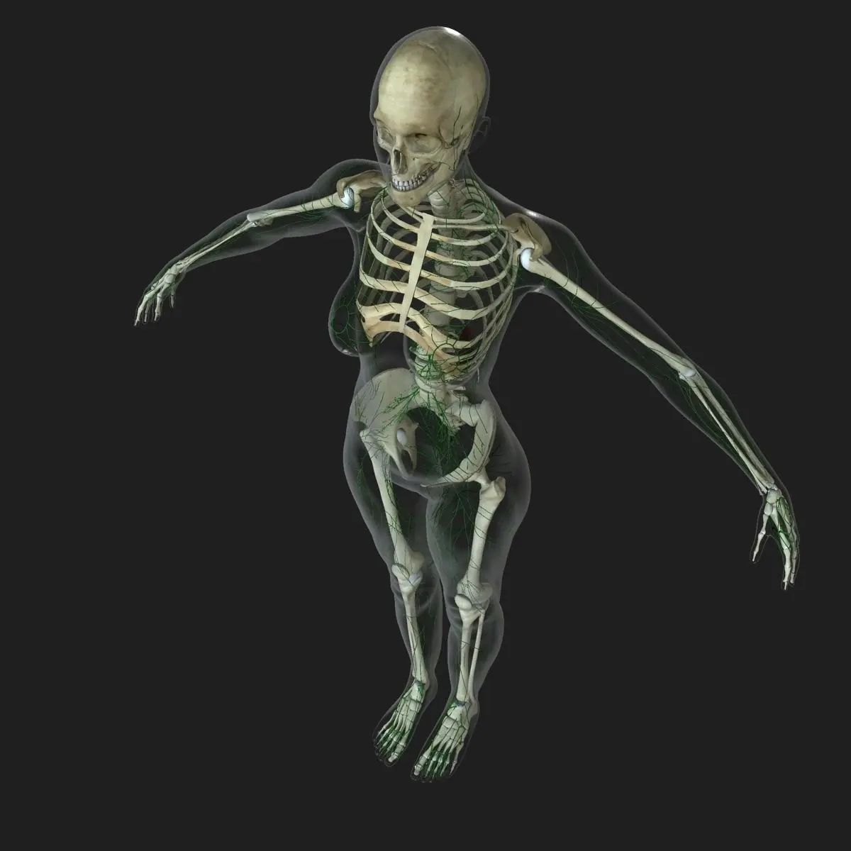 ==FEATURES==Detailed Lymphatic system with full body skeleton-X-Ray Shader for the Skin (Ready to render exactly as shown)-Each bone is select-able and named / grouped properly for easy organization-Real World Scale (5 feet 10 inches)-Displacement map for extreme detail-Clean edge-loop based topology-Light set up ready to Render-Maya 2015+ compatible
