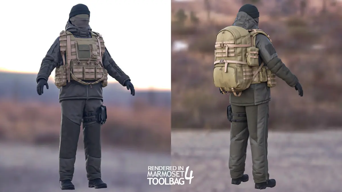 Unreal Engine and Blender version with a body (Rigged) - https://www.cgtrader.com/3d-models/character/clothing/woman-winter-military-outfit-modular-rigged