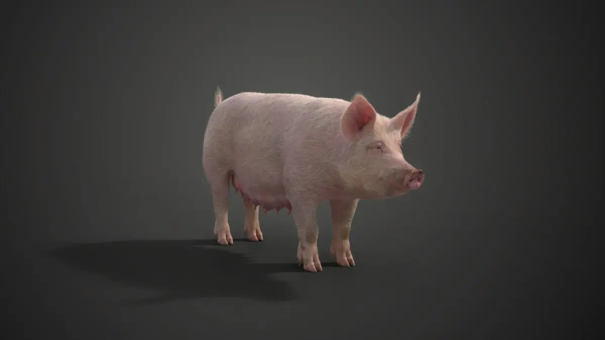 This is a high-quality female large white pig model with multiple 4K textures, fur, rigging, and animations, and it's made with Blender and Cycles renderer at real-world scale. The skin texture and the hair texture are made separately for realism. Besides, 3 loopable animations and 2 unlooped animations are available.