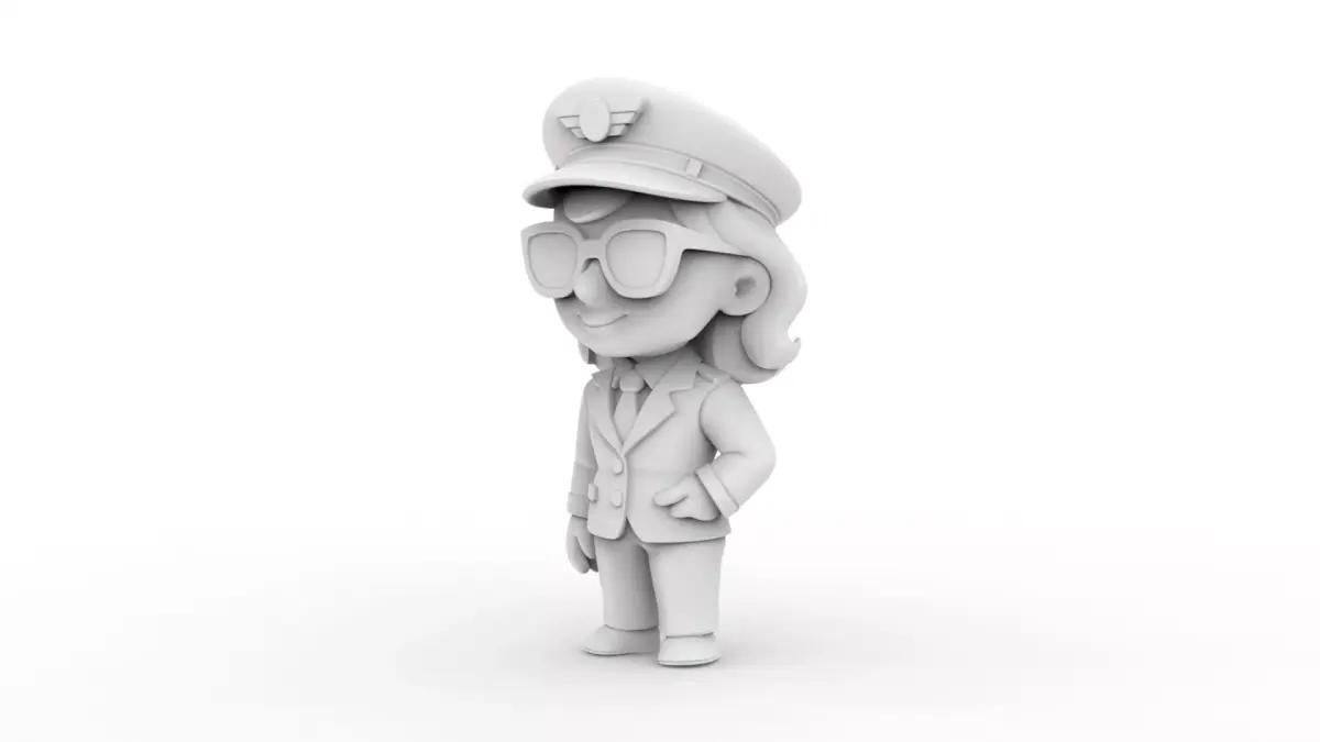 Take to the skies with the meticulously crafted Female Pilot 3D Printable model, a professional-quality character designed with exceptional detail and clean geometry to ensure flawless results. This cartoon-style pilot figure features iconic elements such as a pilot hat with a wings emblem, glasses, a suit, and a tie, all modeled with precision to bring your 3D printing projects to life.