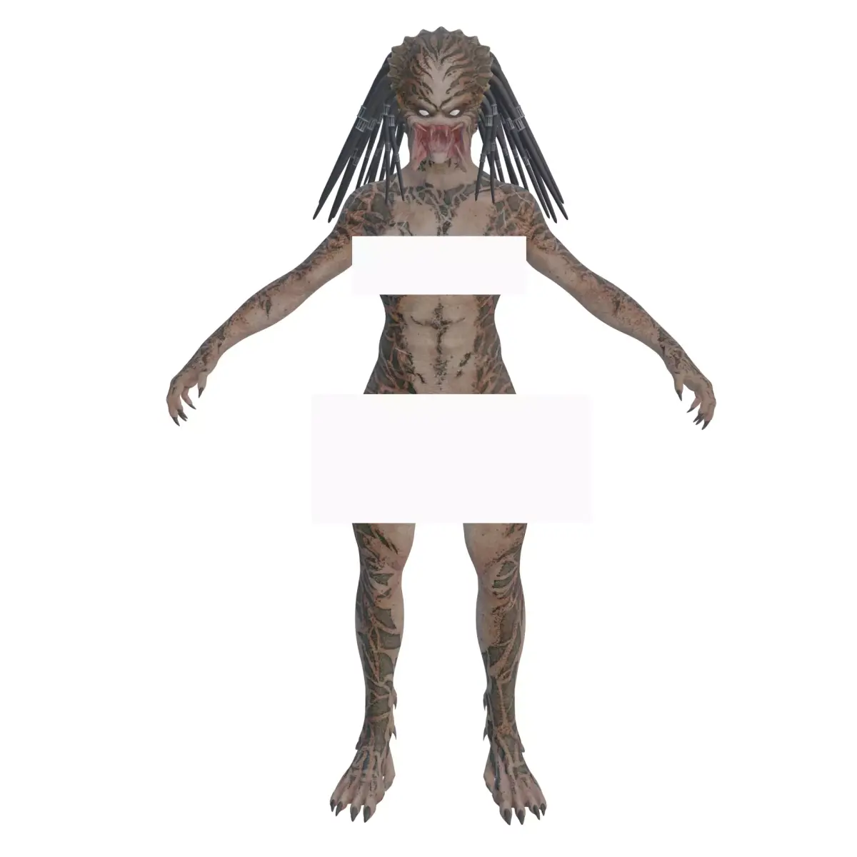 This photorealistic 3D character model presents a Yautja, the legendary extraterrestrial hunter species known as the Predator, recreated with cinematic realism and extreme attention to anatomical and cultural detail. Designed for high-end production pipelines, this asset captures the raw power, ritualistic brutality, and advanced alien technology that define the Yautja race.The character’s anatomy is sculpted with imposing musculature, dense bone structure, and thick reptilian skin, conveying immense physical strength and endurance. Fine surface details such as scars, battle damage, skin folds, and subtle texture variation reinforce the Yautja’s long history as a seasoned hunter. Facial features are aggressive and alien, with mandibles, deep-set eyes, and a menacing expression that commands intimidation even at rest.The iconic dreadlock-like tendrils are modeled with layered volume and weight, designed to move naturally during animation while maintaining visual density. The bio-mask is recreated with high-fidelity detailing, including surface wear, engraved markings, and advanced targeting optics. Armor components are asymmetrical and battle-worn, reflecting the Yautja’s honor-based culture and combat experience.A full PBR workflow ensures realistic light response across skin, armor, metal weapons, and organic materials. Materials include skin subsurface variation, scratched metals, worn leather straps, and matte alien alloys. Clean topology and optimized mesh density support both cinematic rendering and real-time engine integration.Fully rigged in Blender, the model is animation-ready and suitable for combat animations, stealth movement, trophy poses, and cinematic storytelling. This asset is ideal for sci-fi films, games, cinematic trailers, VFX shots, and high-quality character showcases.