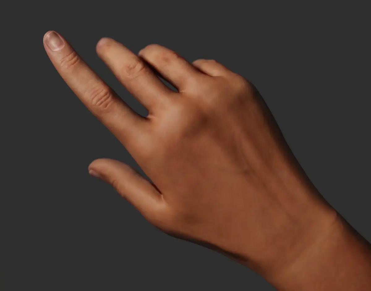 The hand 3d model has a clean geometry of all quads, total 1829 polygons and 1831 verticies. The mesh is available in the following three file formats, blend (source file), FBX and OBJ.