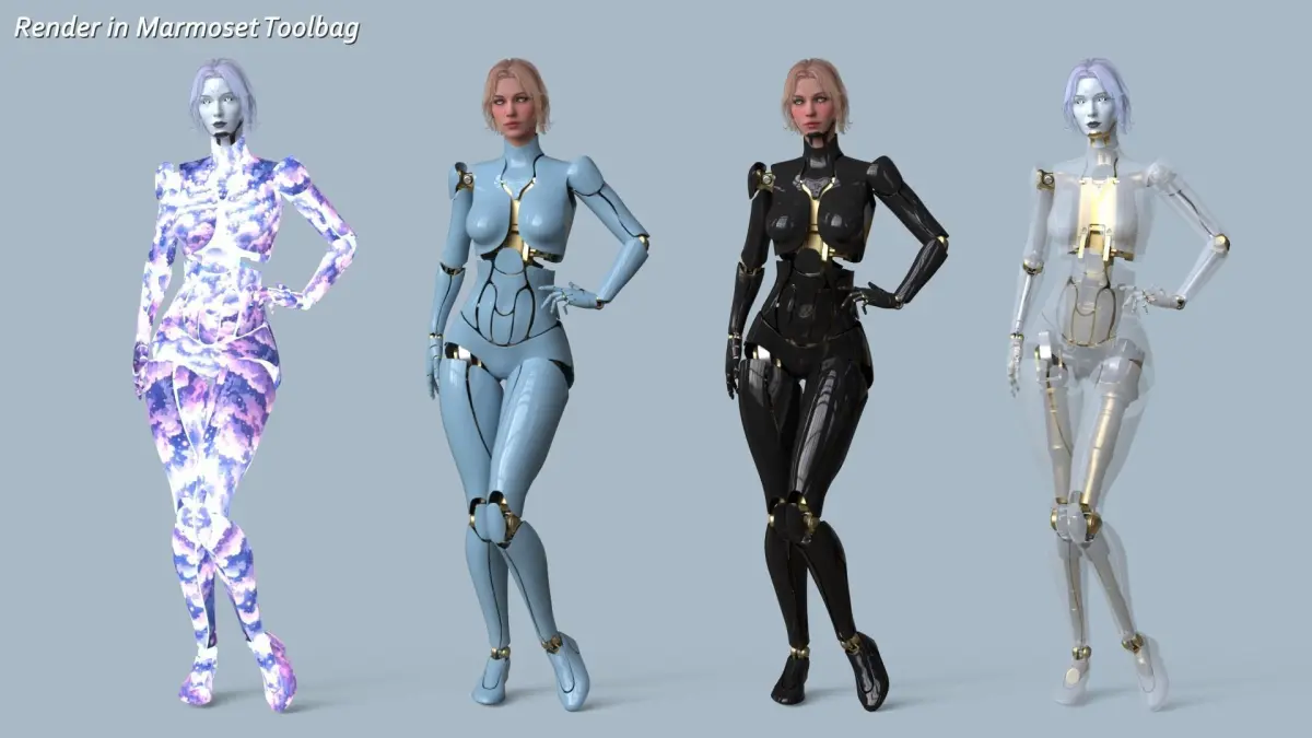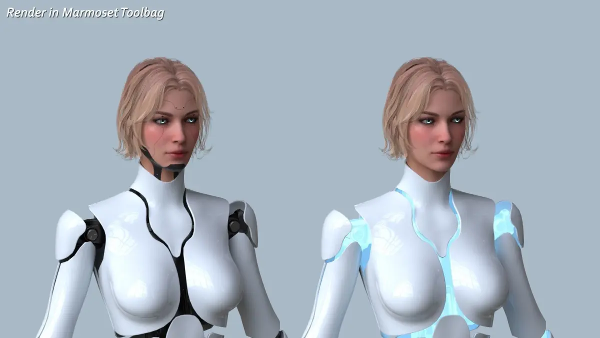 Low-Poly Rigged PBR Modular Character - Female Robot R68