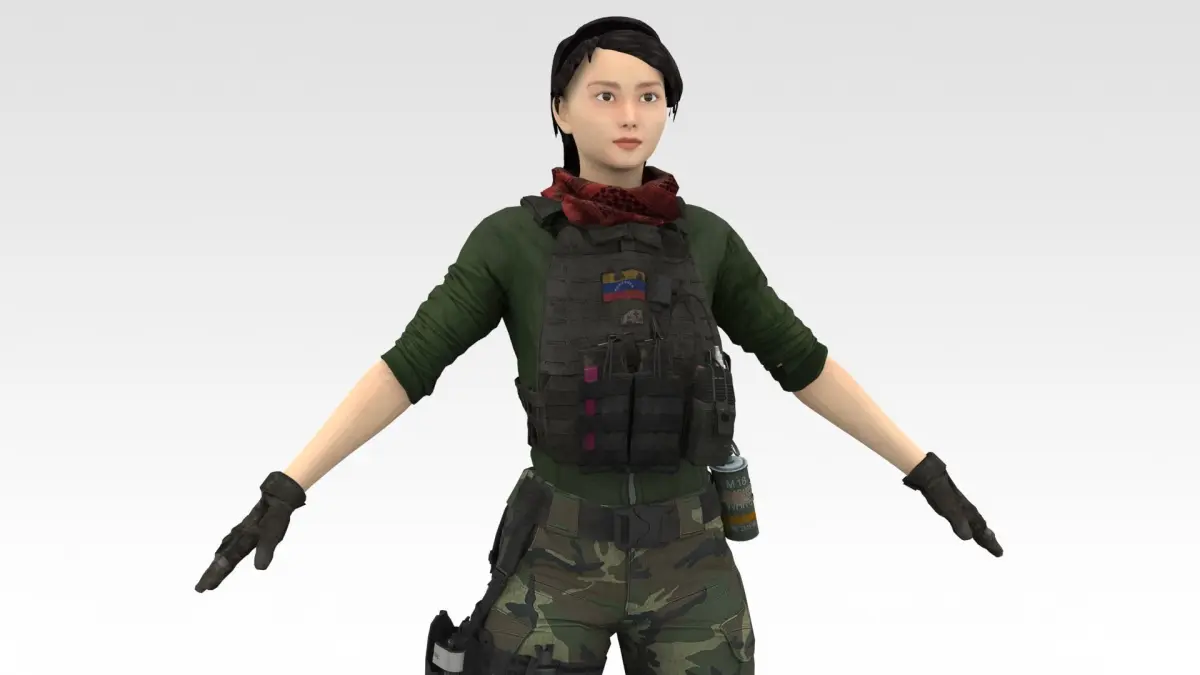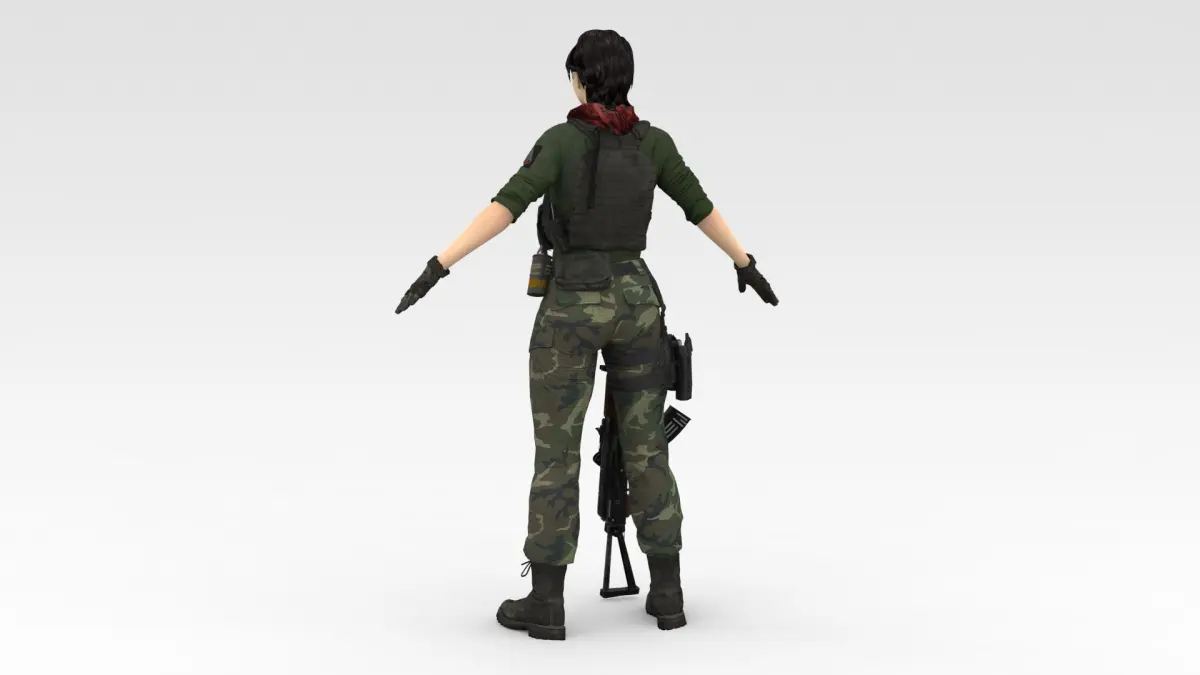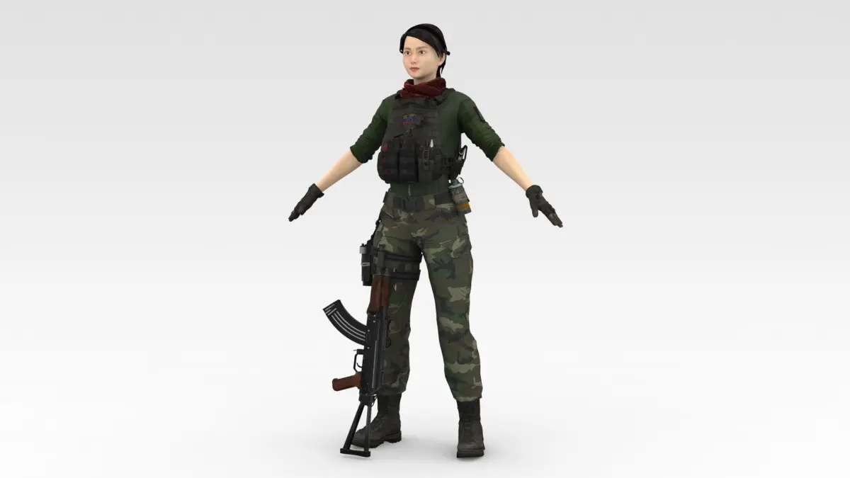 Description:Female Soldier 3D model is a high quality, photo real model that will enhance detail and realism to any of your game projects or commercials. The model has a fully textured, detailed design that allows for close-up renders. Features:• High quality polygonal model with detailed texture, correctly scaled for an accurate representation of the original object.• Maya 2019 V-Ray and standard materials scenes along with multiple other file formats.• Texture files are given in .jpg formats for easy access.• All preview images are rendered using Autodesk Maya vray• No cleaning up necessary, just drop your models into the scene, Load the texture and start rendering.• No special plugin needed to open scene.