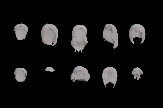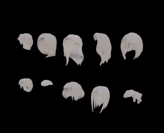 10 Woman's hairstyles. Hair . Short, long hair and...Formats: fbx, obj, blender. Ready to use Suitable for games, animation, promotional videos and....With the ability to be readjusted.Suitable for all kinds of colors. Suitable for different ages.