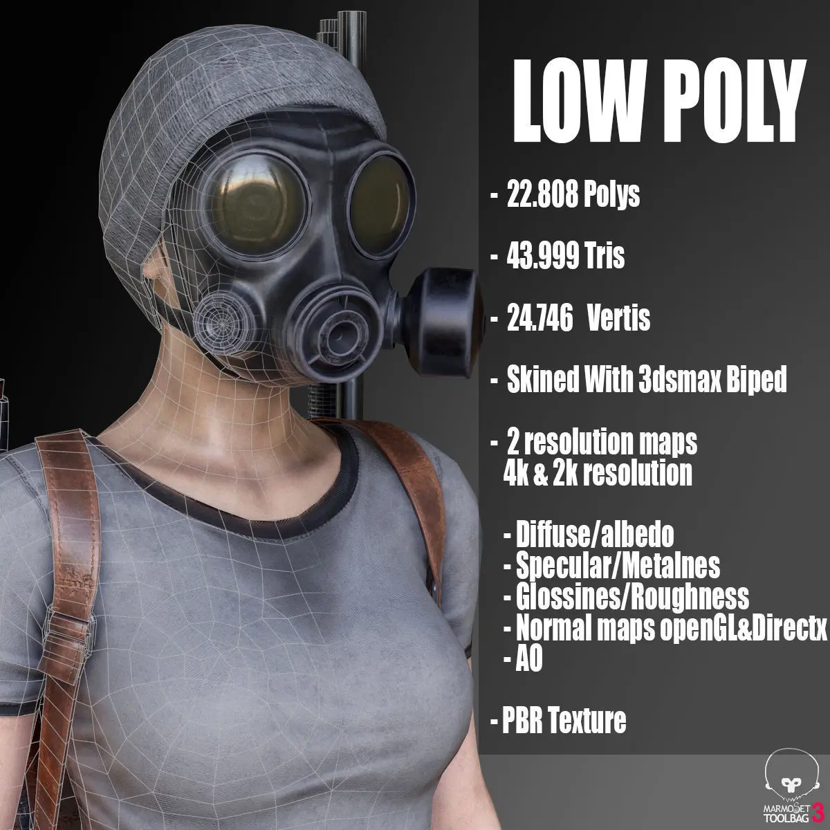 A Game - Ready lowpoly Survival Character with PBR (Physical Based Rendering) Textures.