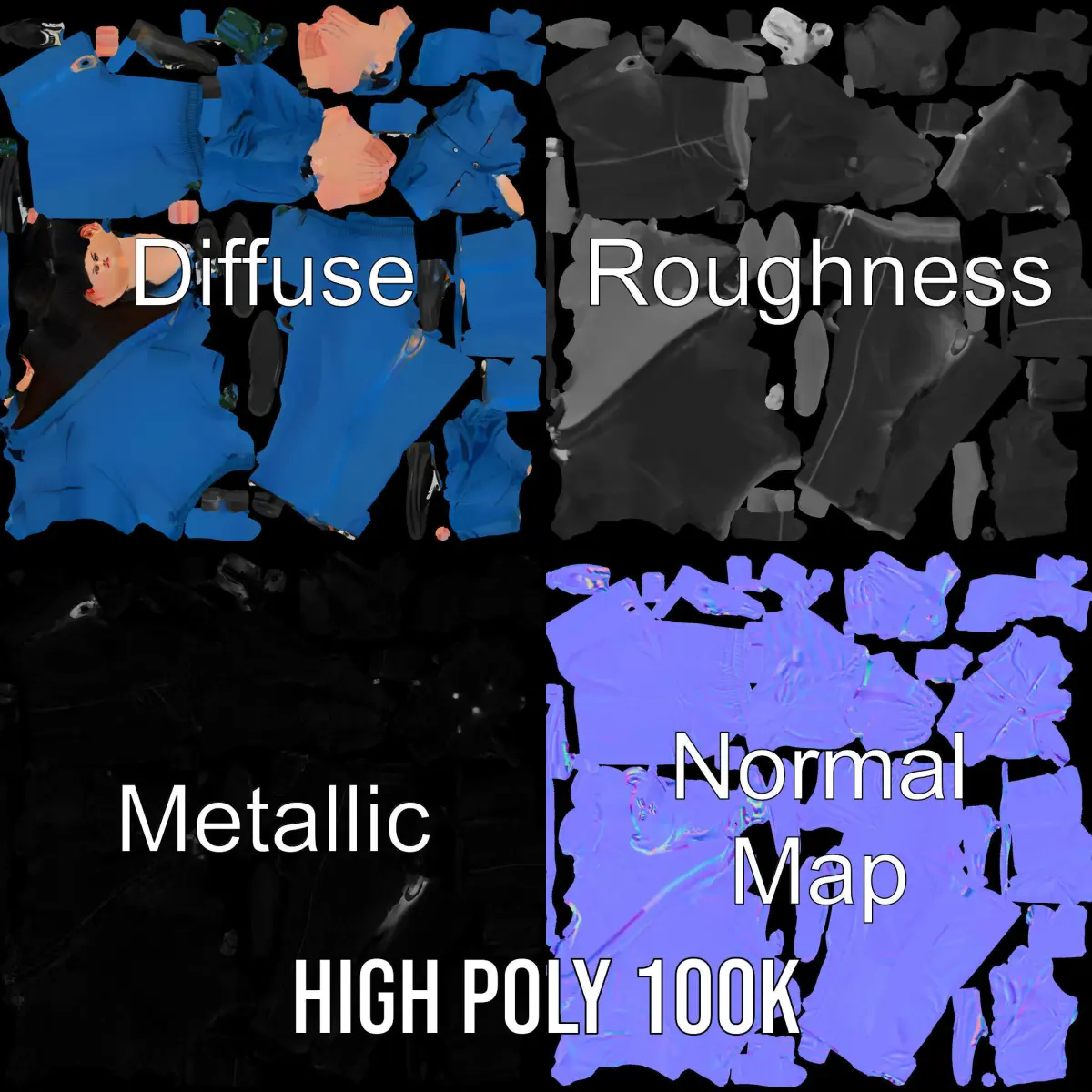 Included animation of Idle, Walking, Running etc. It's full compatible with Mixamo RIG. This character model comes in 3 levels of detail: low-poly for mobile games, mid-poly for standard games, and high-poly for cinematics. The model is fully rigged and ready for animation. It includes PBR textures (4096x4096), including diffuse, normal maps, and metallic/roughness maps. The character is provided in T-pose and can be easily imported into any modern game engine or 3D software. Perfect for games, animations, or virtual reality applications. Please like and comment if you find this model useful!