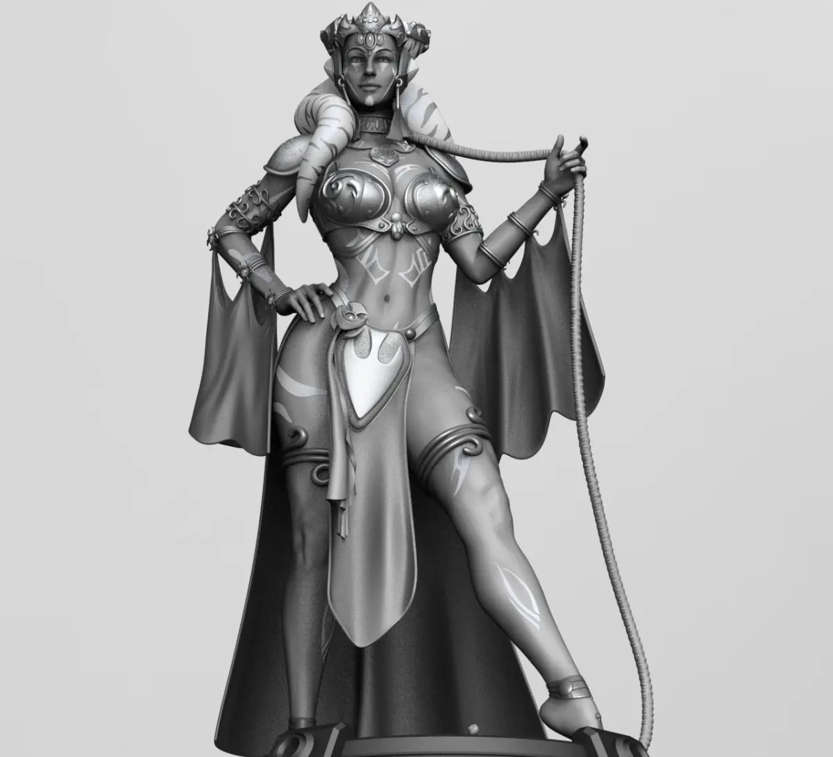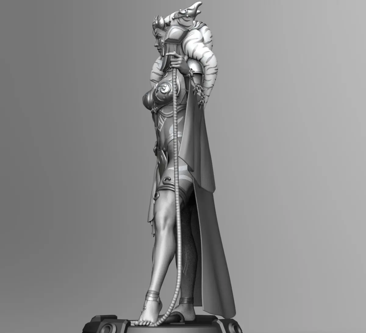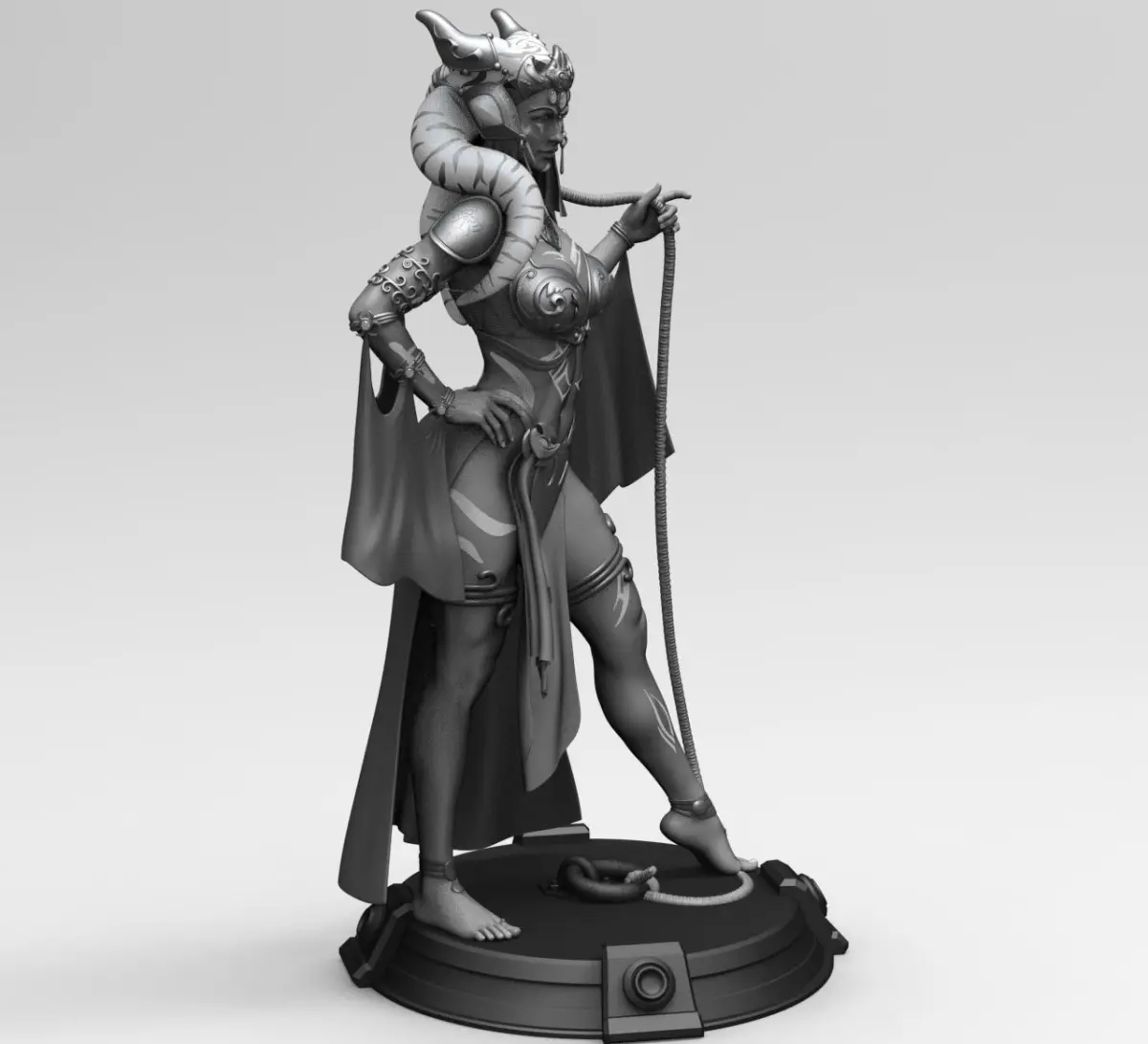 From the Starwars universe, a generic slaved female togruta forced to dance for her master. Default scale height=400mm. Model tested in FDM printer. Divided into parts for easy print and paint experience. Not provided in full piece. Only full assembled.
