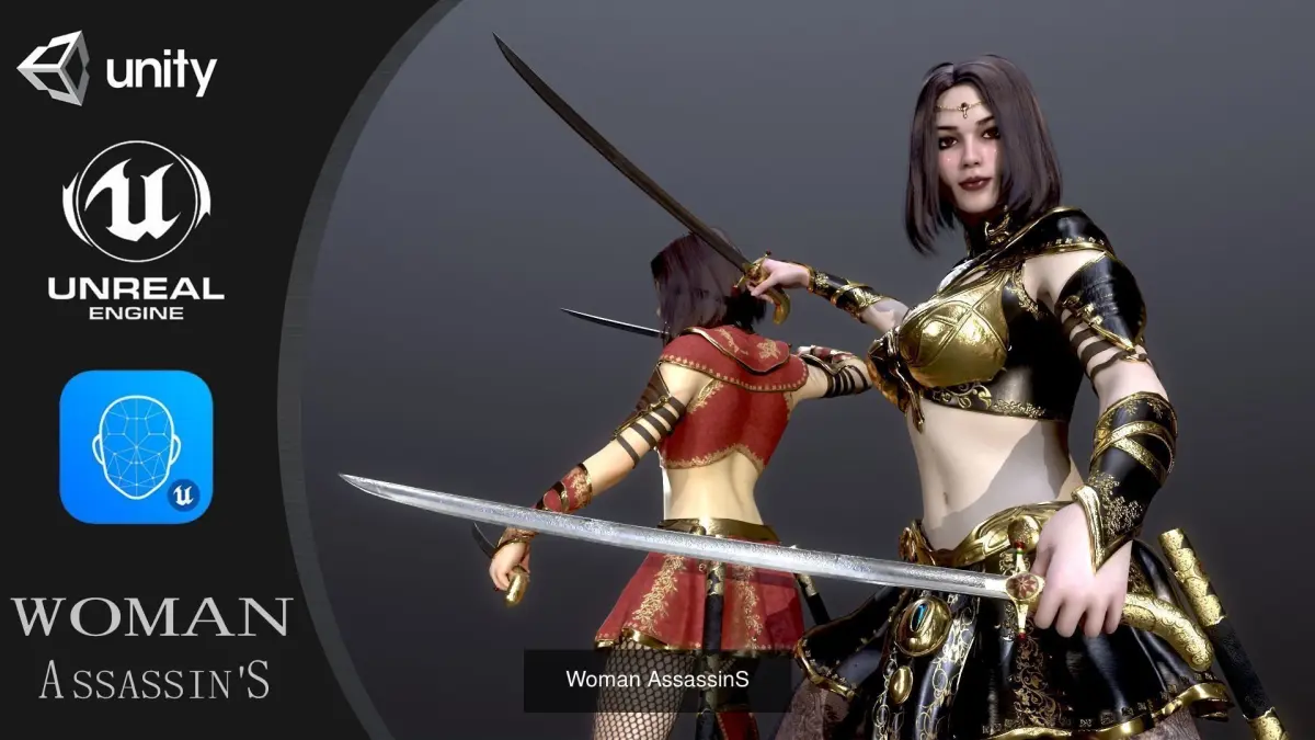 Woman Assassins A pose Low_poly character redy for game for Unreal engine and Unity