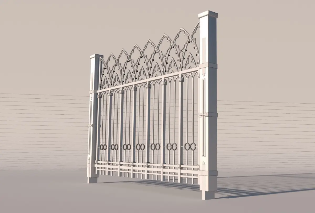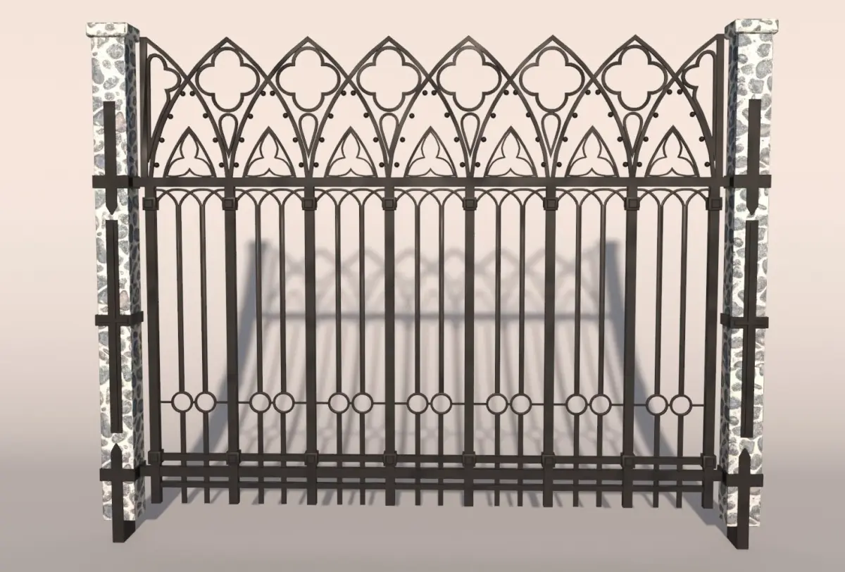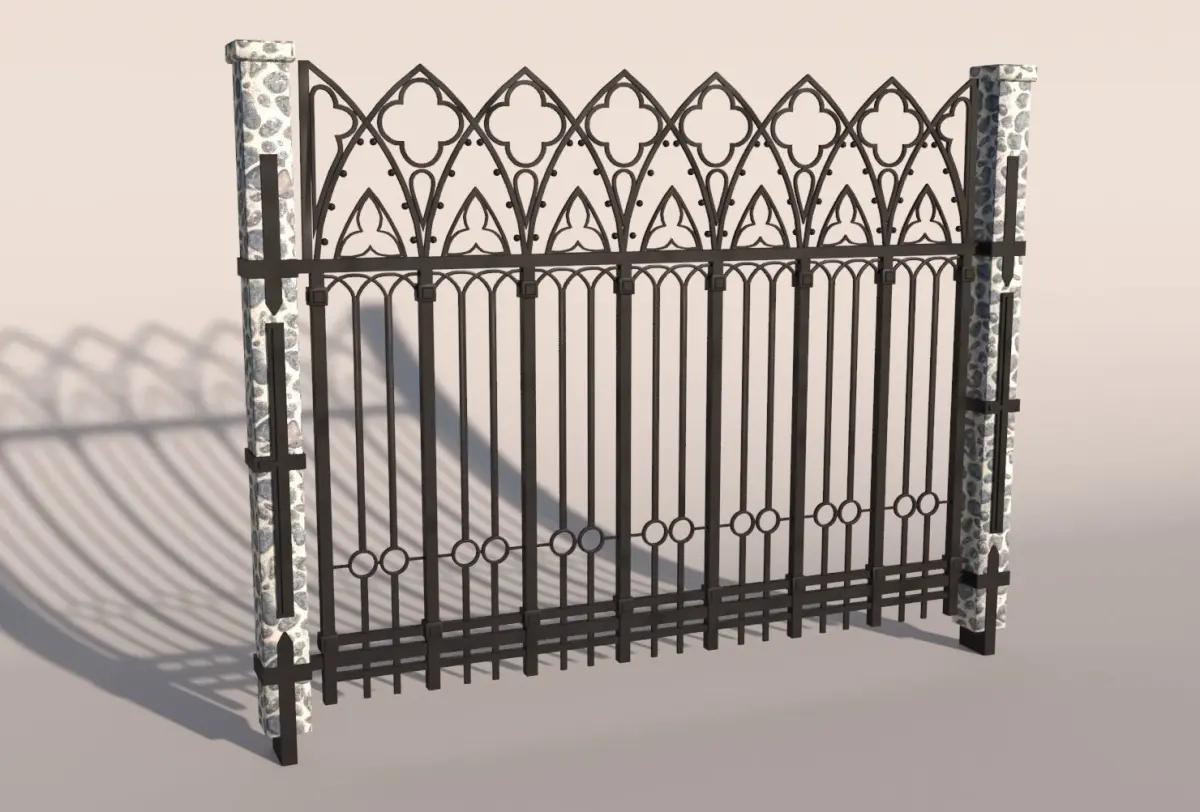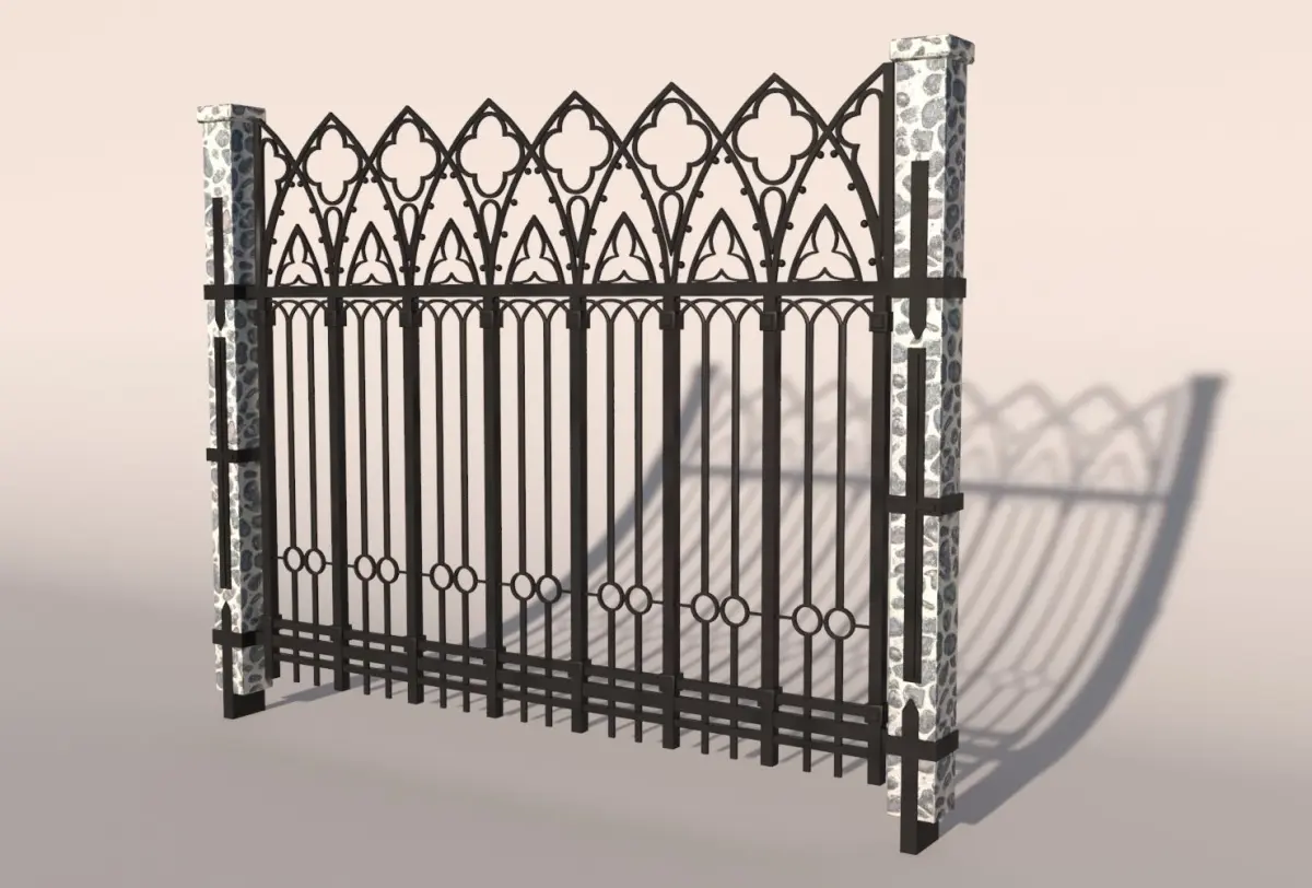 High poly 3d model of detailed iron fence