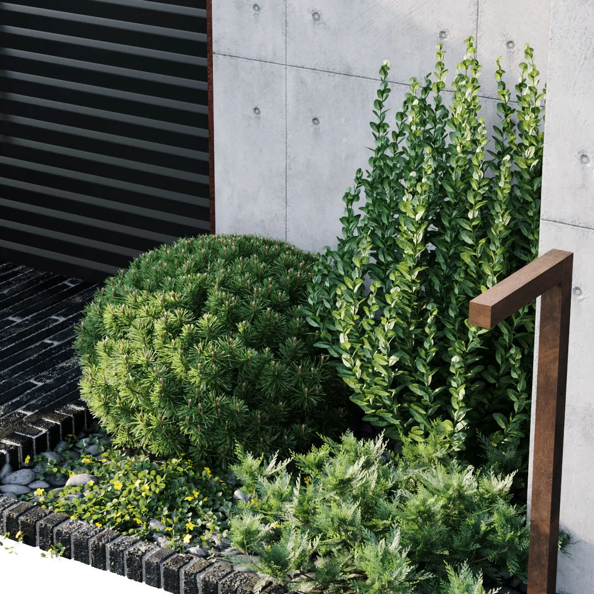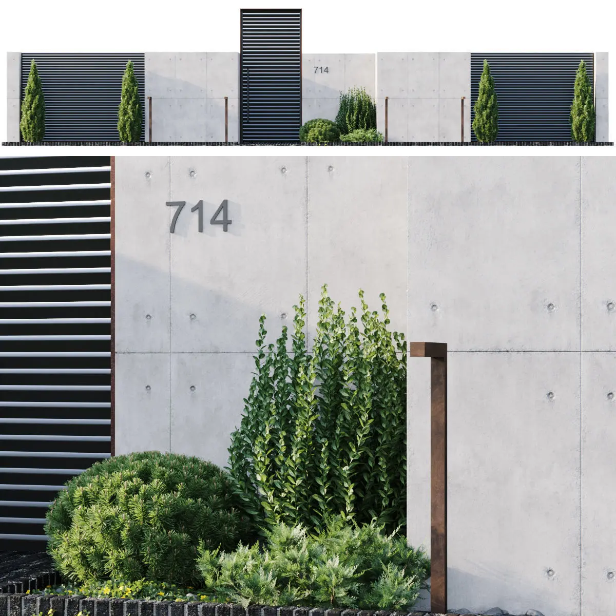 HomeCatalogFence 2 modern garden with trees and shrubs 3D model