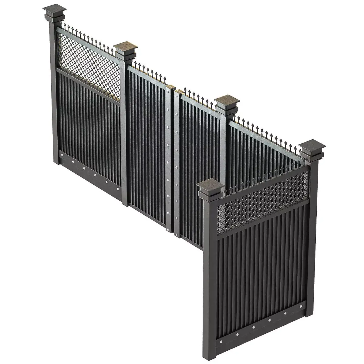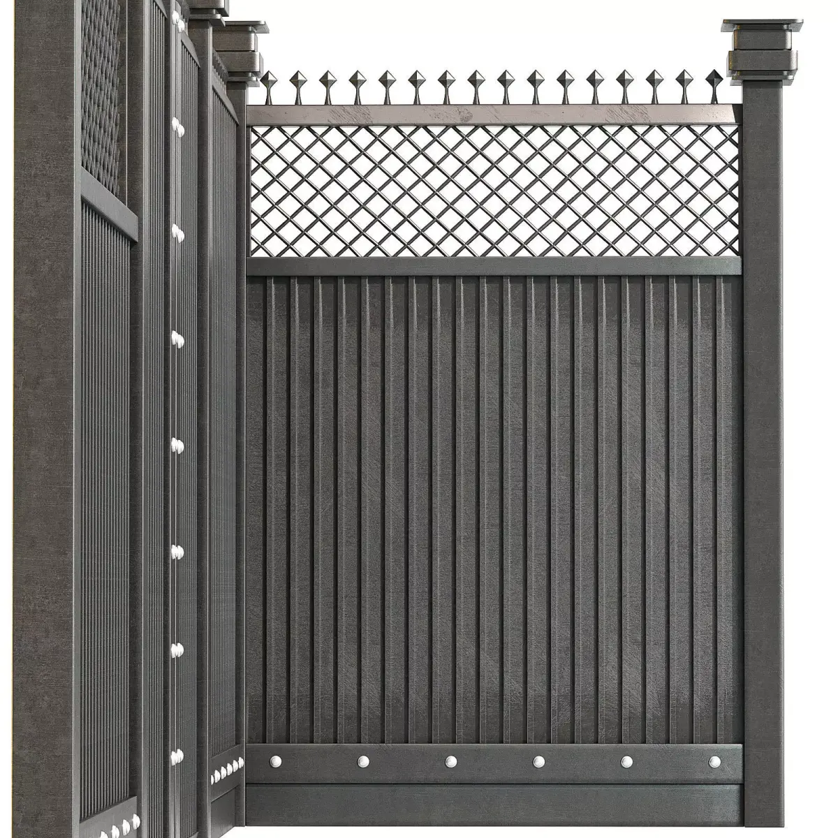 Designed with realistic proportions and solid construction, this fence works perfectly for luxury residential projects, classic or modern villas, urban exteriors, and boundary walls.The combination of solid metal panels and patterned sections adds visual depth while maintaining privacy and security.