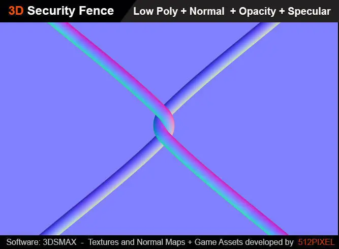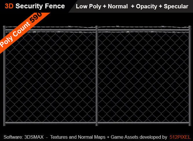 Game ready:Low Polygon Fence native 3dsmax 2017 scanline render 3ds 2016,2015,2014 cross platform polygon 4 sided plane , normal projected onto the plane obj versionvcinema 4d, maya, blender fbx