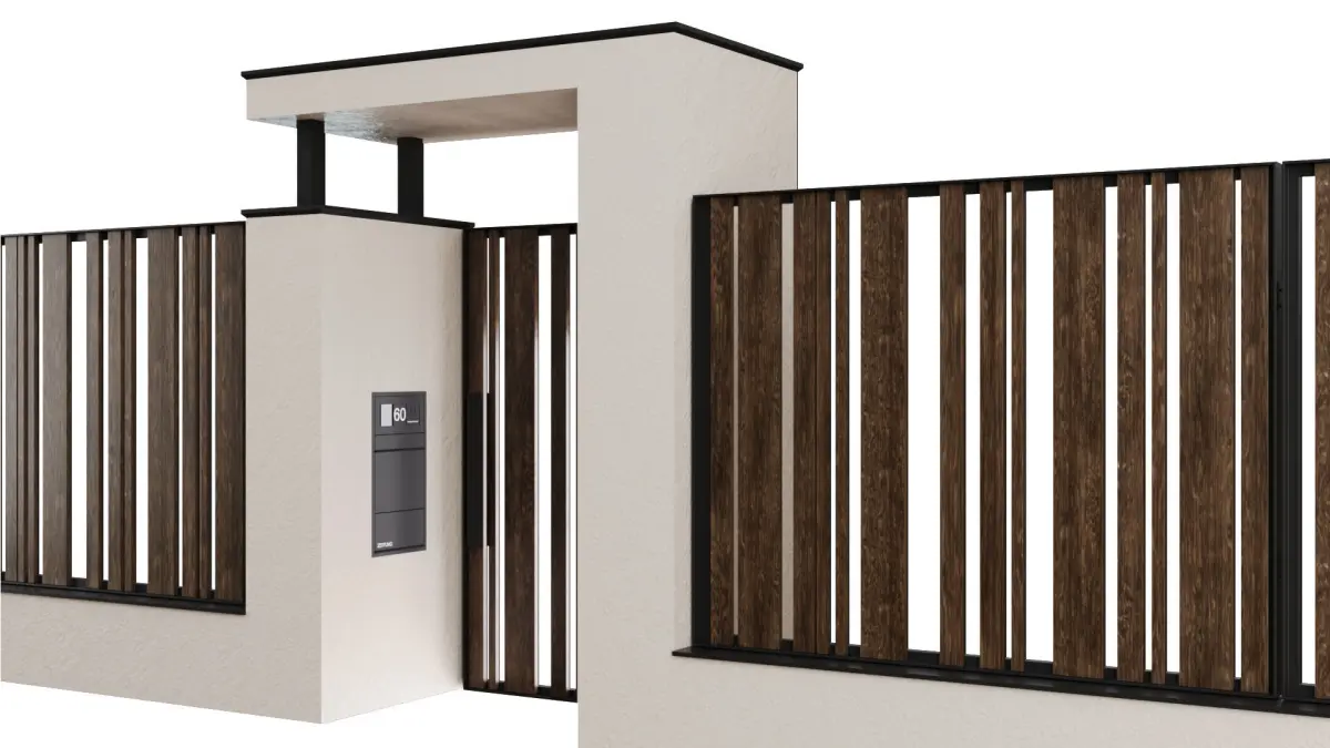 HomeCatalogFence with a canopy over the entrance and mailbox 3D model