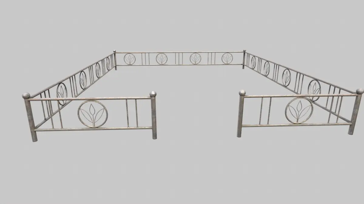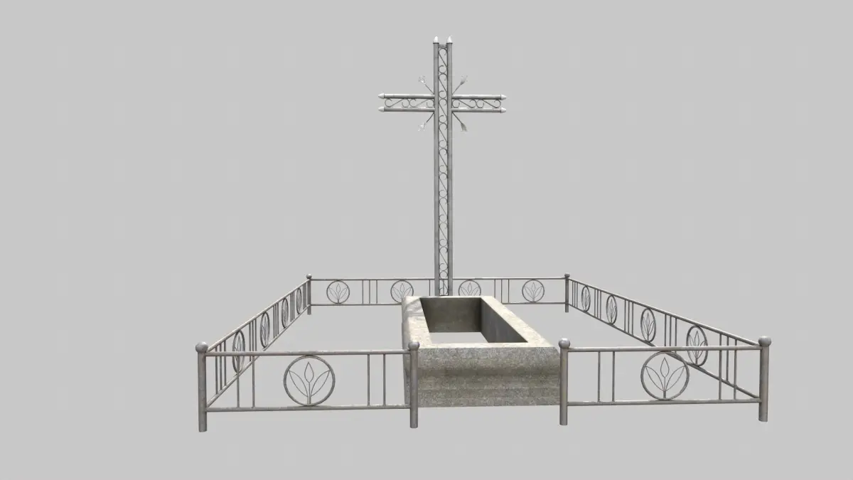 Fenced Grave With Ornate Flower Cross